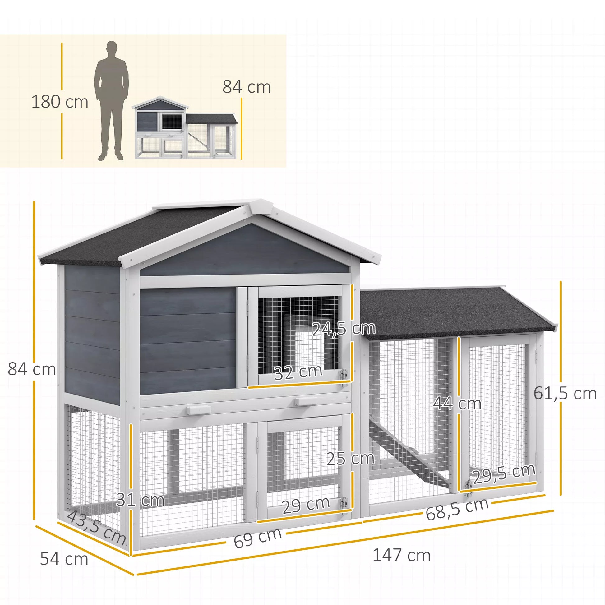 - ✔ The living area and free enclosure are made of high-quality spruce wood, properly processed