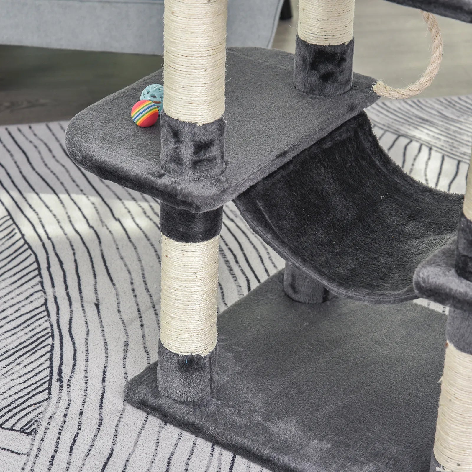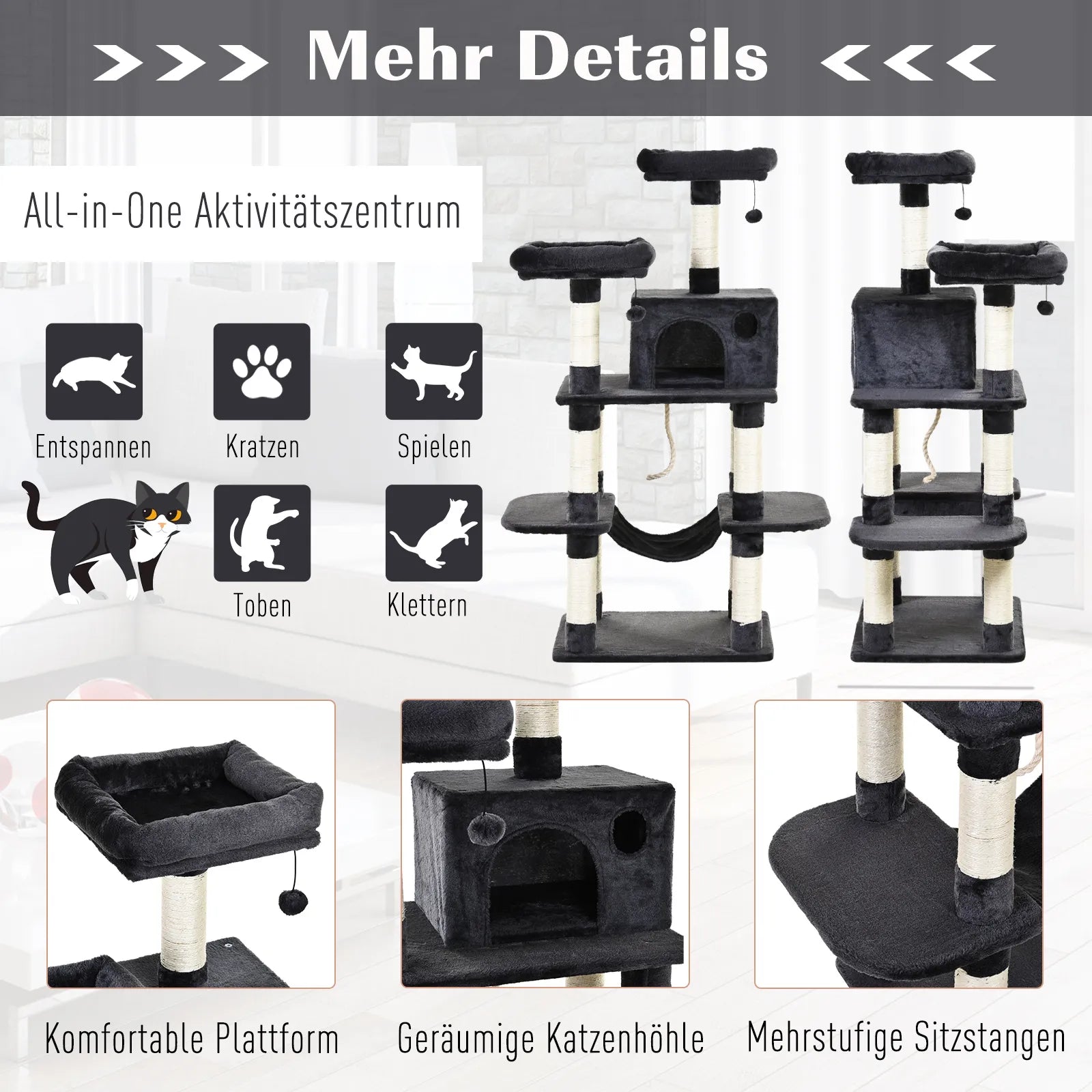Luxury cat tree with hammock and house, dark grey, 60 x 48 x 144 cm