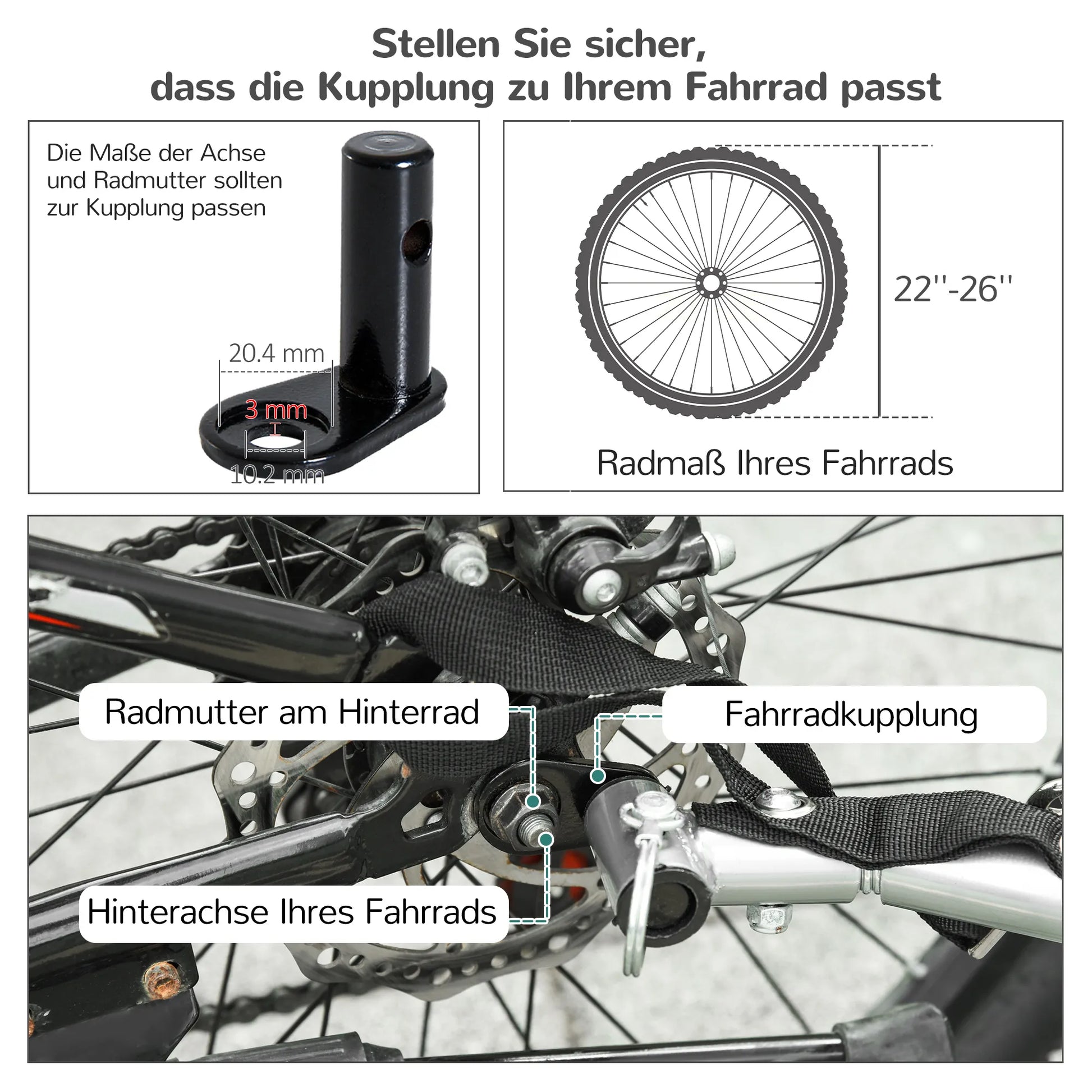 - ✔ Recommended bike size: 20"-26" (also to determine if the hitch fits)