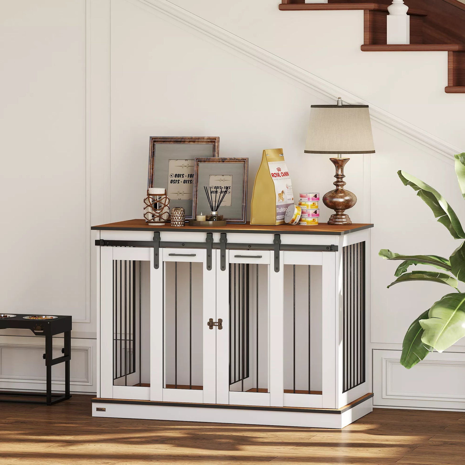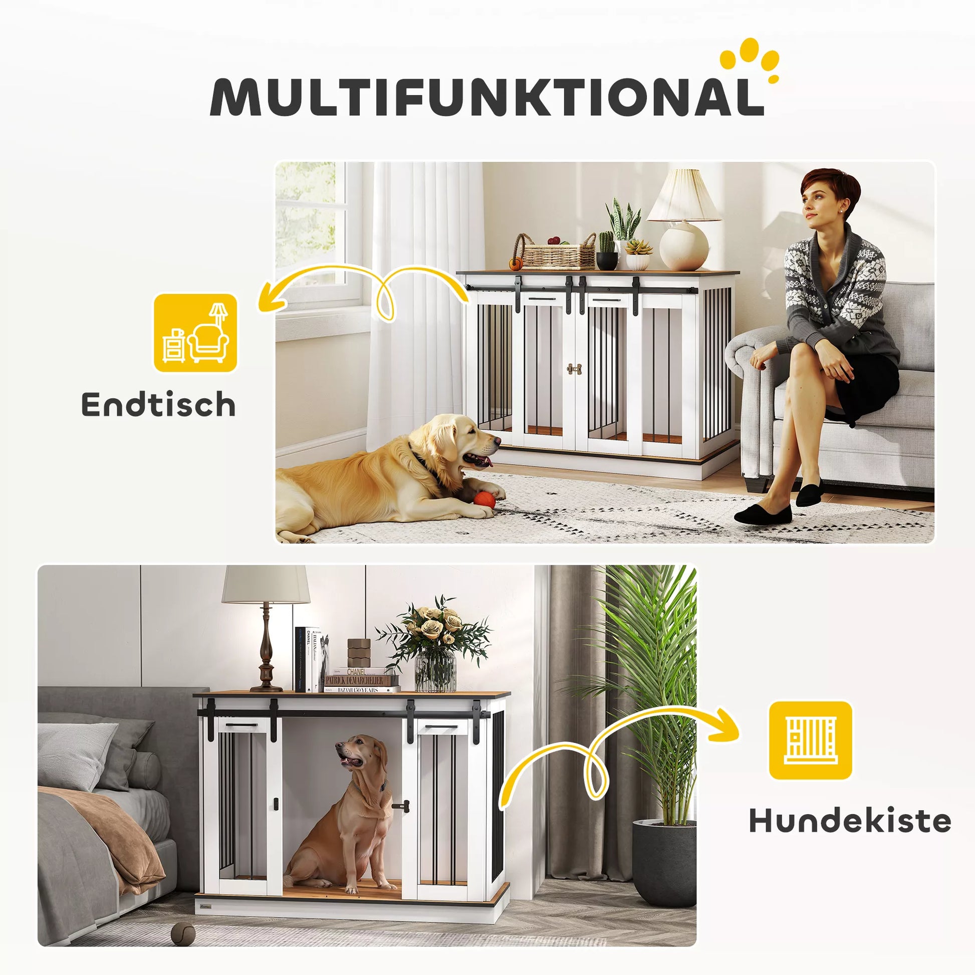 The dog kennel with removable partition offers flexibility between two small spaces or one large one. Enjoy comfort and stability with this dog kennel that fits perfectly into your home. This dog kennel for the home with securely locking sliding doors optimally combines functionality and aesthetics for the well-being of your pet. Discover the perfect solution for your home.