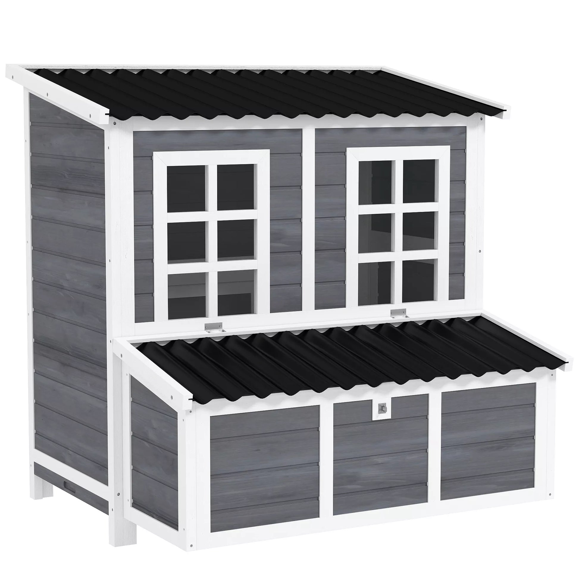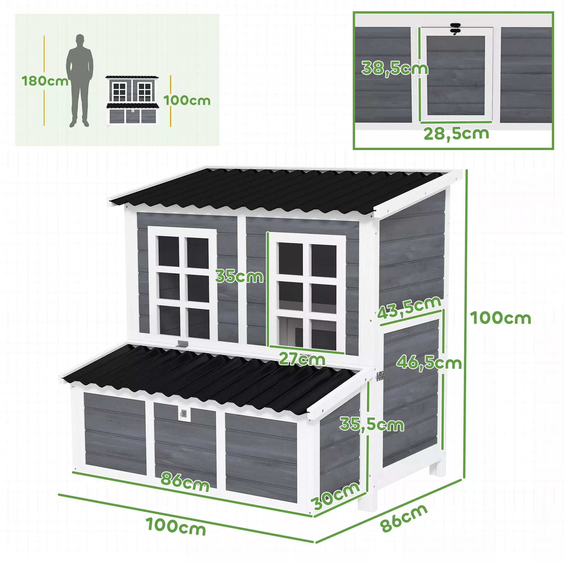 Chicken coop with nesting box for 4-6 chickens, waterproof roof, spruce wood, plastic, 100 x 86 x 100 cm, light gray