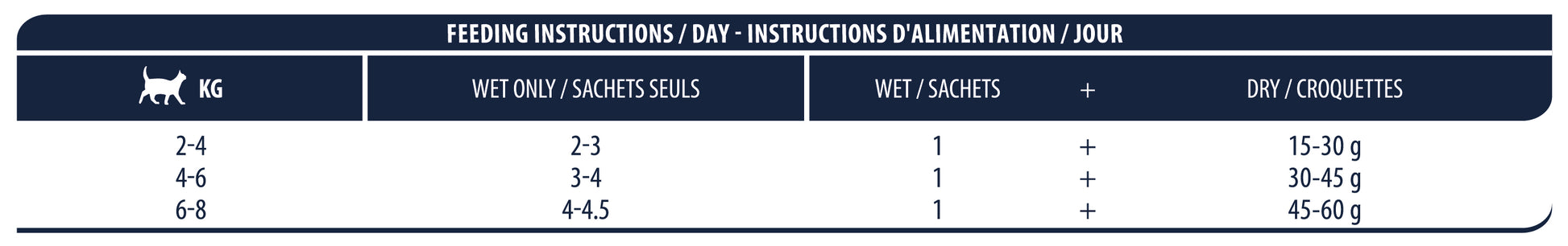 ŠĖRIMO INSTRUKCIJA: Šėrimo norma yra nurodyta ant pakuotės, reiktų atsižvelgti į kūno svorį ir aktyvumą. Laikyti vėsioje, sausoje vietoje. Patiekti kambario temperatūros.Atidarius laikyti šaldytuve iki 2 parų. Visada turi būti švaraus vandens.