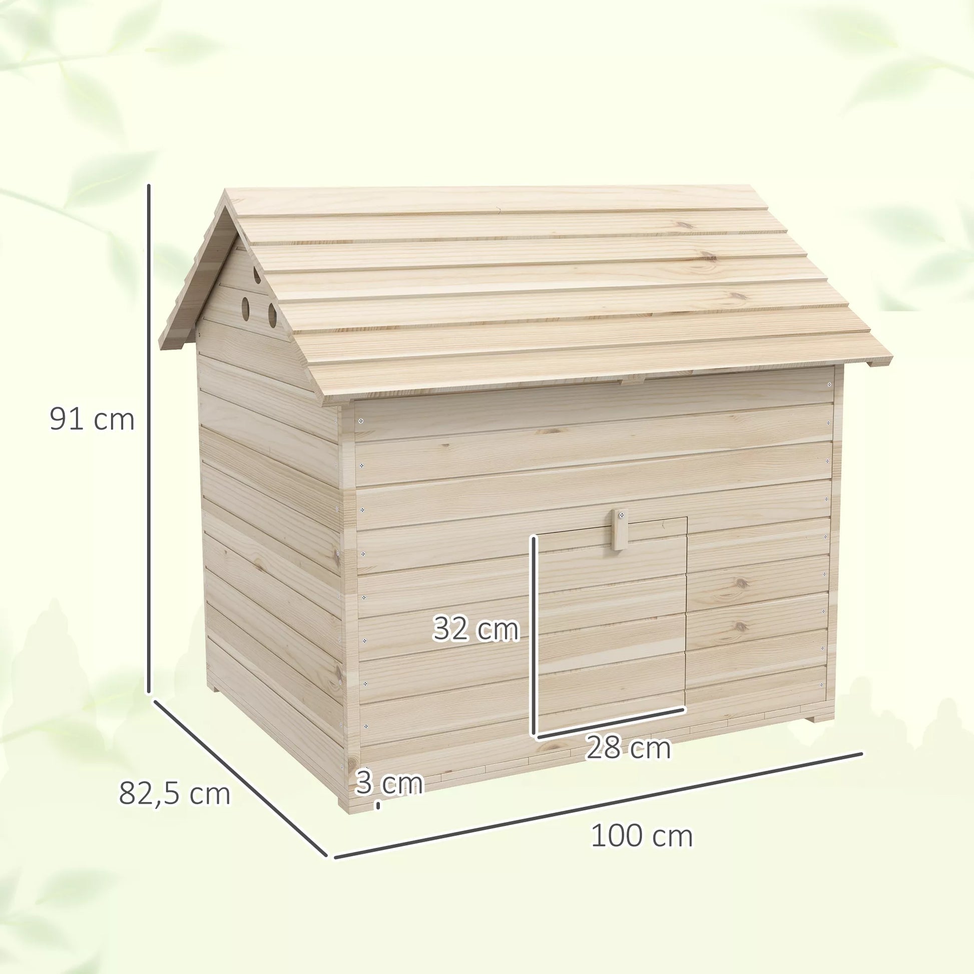 • ✔ Dėl nuožulnaus stogo ir eglės medienos medžiagos šis namelis tinkamas naudoti lauke