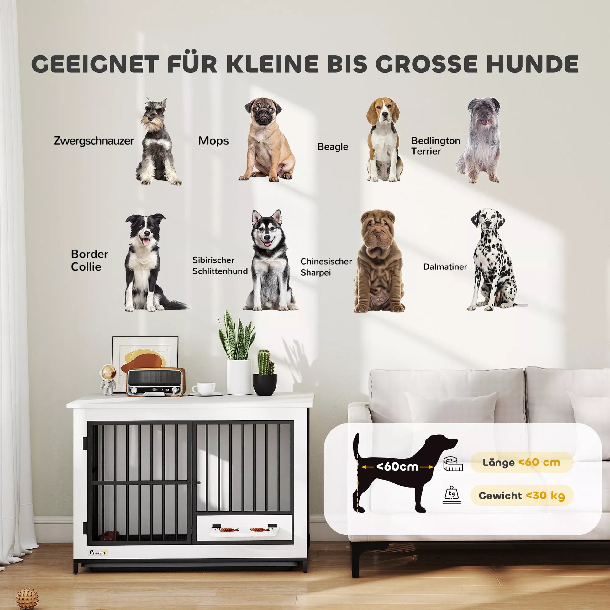 Didelė šunų transportavimo dėžė, lengva prieiga, užrakinama, su pasukamu dubenėlio laikikliu, skirta mažoms ir didelėms šunims, balta