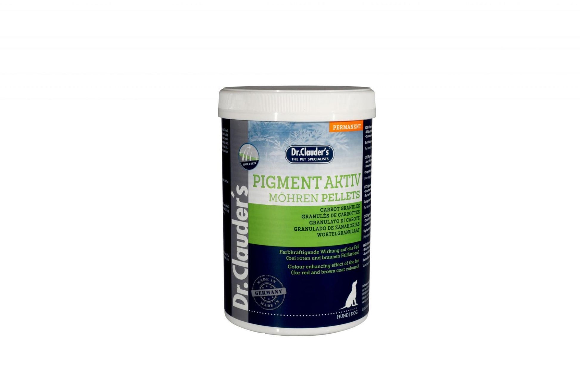 Blanki, neišsiskirianti kailio spalva atrodo nemaloniai ir nepatraukliai. Morkose esantis provitaminas A (beta karotenas), kurio yra Pigment Aktiv Möhren Granulat sudėtyje, teigiamai veikia kailio pigmentaciją. Jis taip pat teigiamai veikia raudonus ir rudus pigmentus, jei jų yra kailyje: Intensyvi kailio spalva Rudo ir raudono atspalvio kailiui