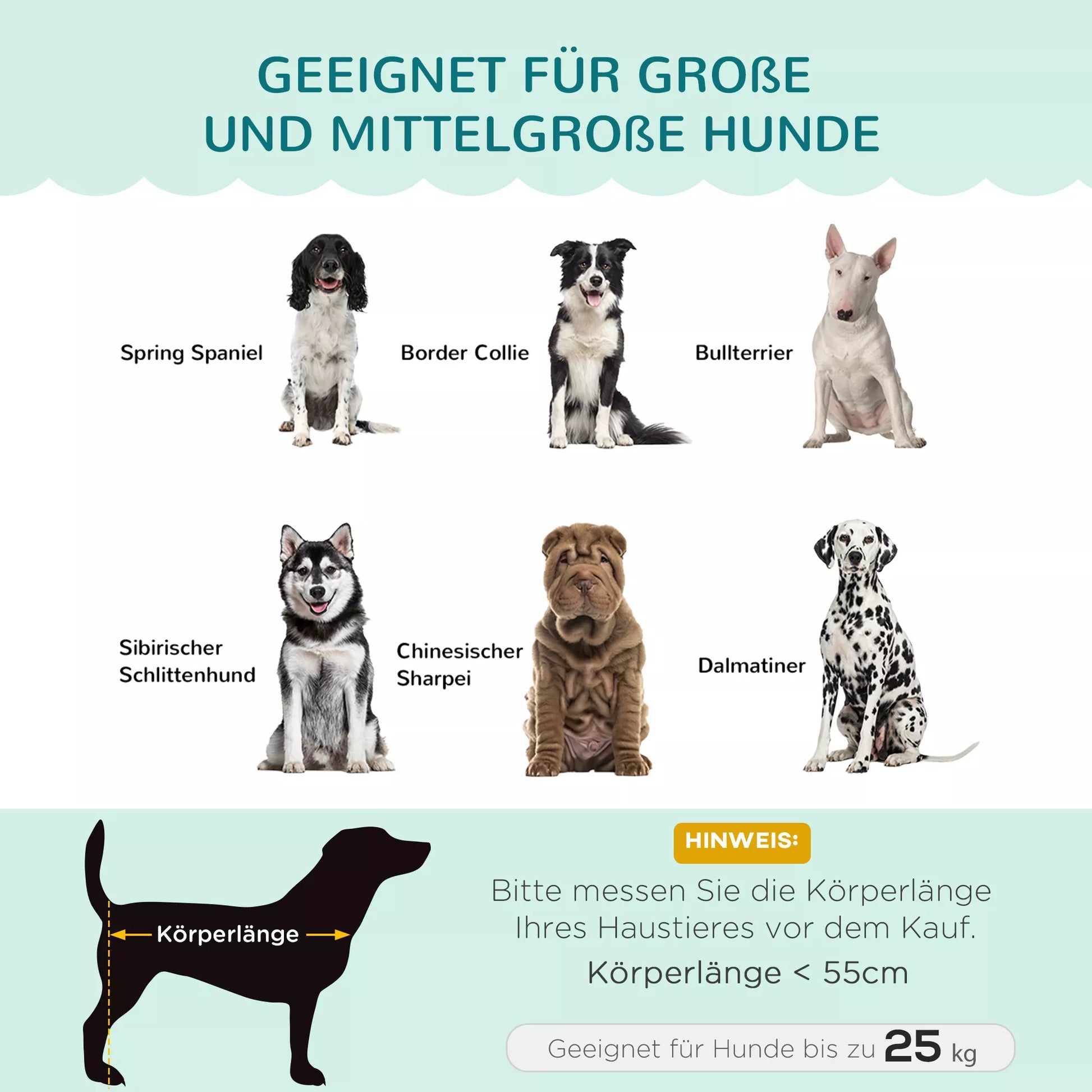 - ✔ Tinka vidutinio dydžio ir dideliems šunims iki 25 kg; rekomenduojama, kad šuo būtų ne ilgesnis nei 55 cm