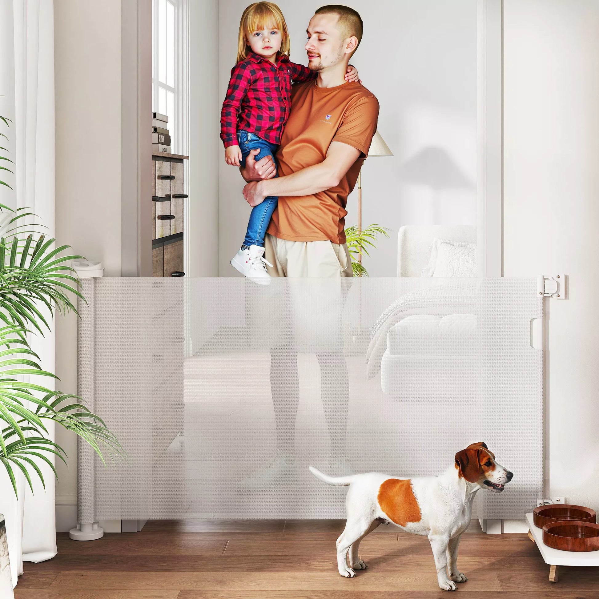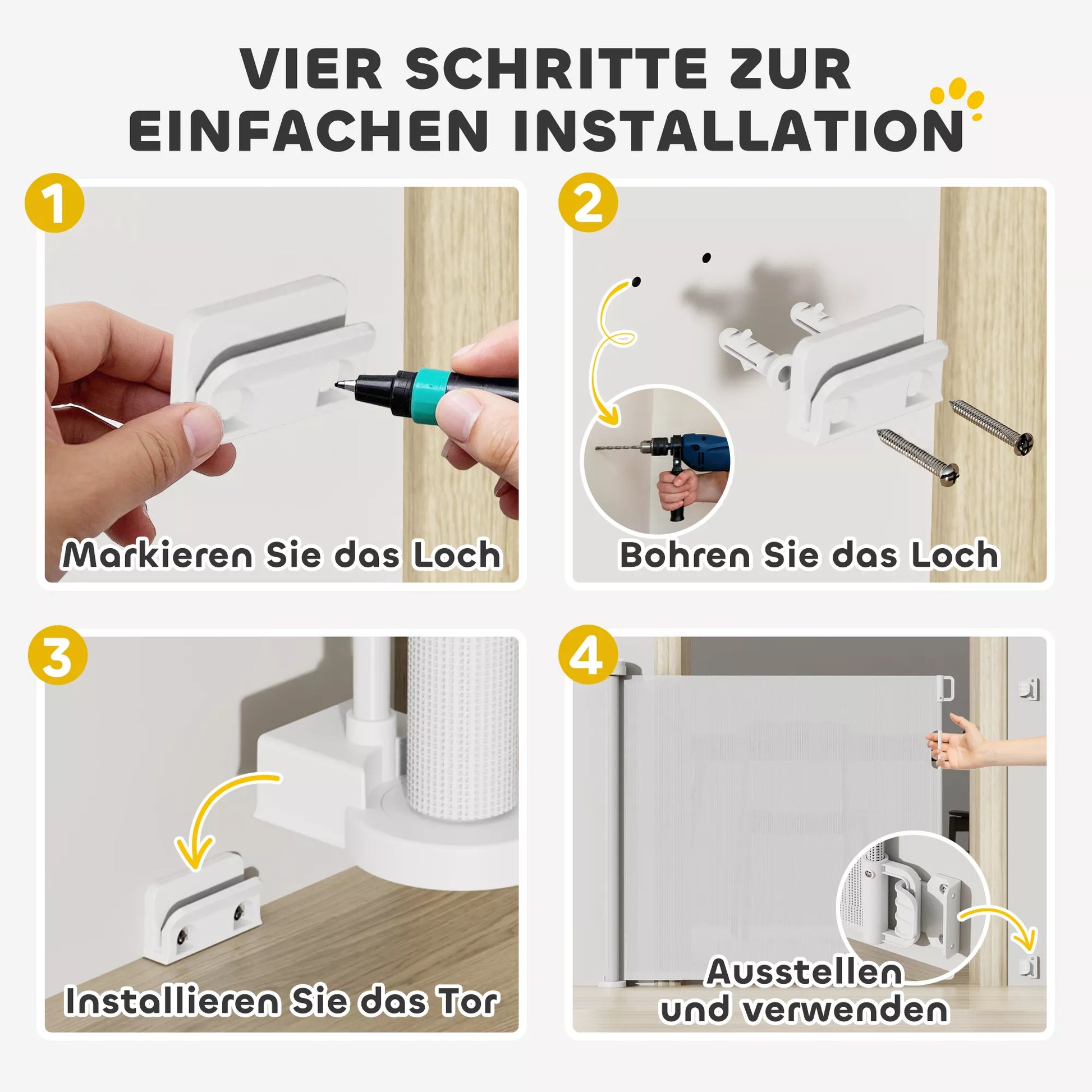 Apsaugokite savo mažą šunį su mūsų ištraukiamaisiais varteliais, tinkamais durims iki 136 cm ir šunims iki 40 cm aukščio ties pečiais. Be atramine sijos – saugus praėjimas jūsų šeimai. Greitas montavimas su plėtimosi kaiščiais. Minkštas, padengtas tinklelis apsaugo jūsų šunį, o fiksavimo jungiklis palengvina naudojimą. Puikiai tinka koridoriams ir durims – ideali sprendimas jūsų namams!