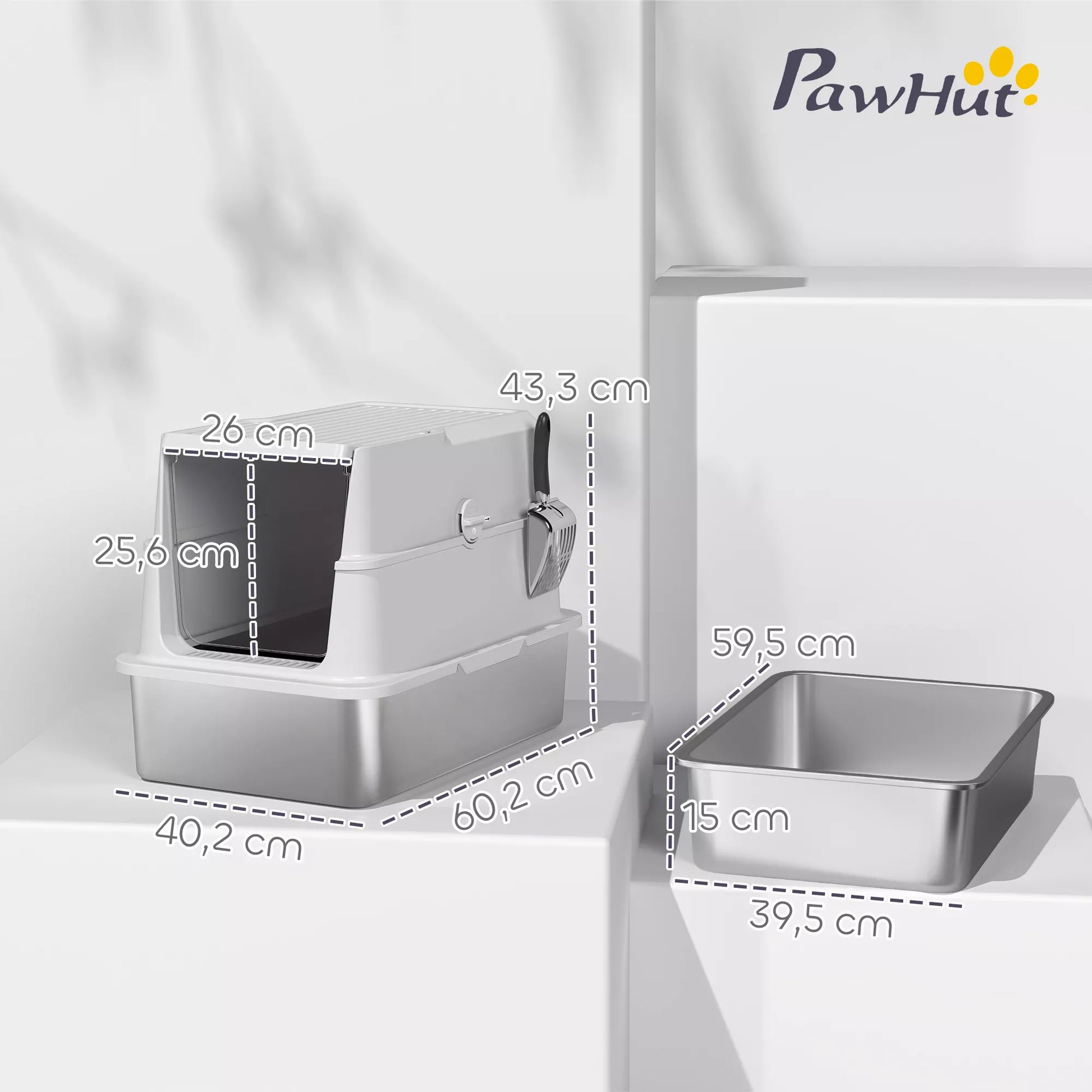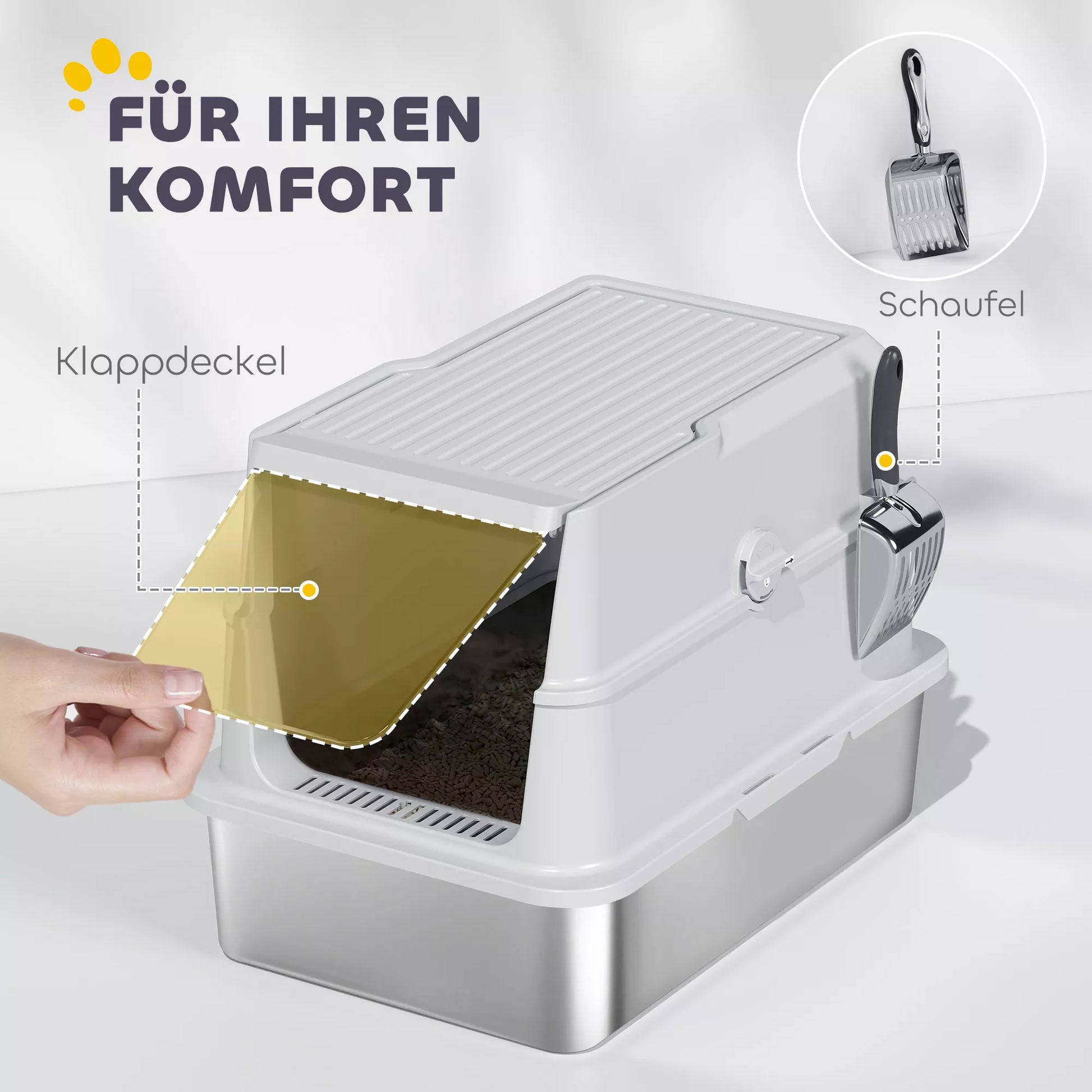 - ✔ 1 x nerūdijančio plieno kačių tualetas