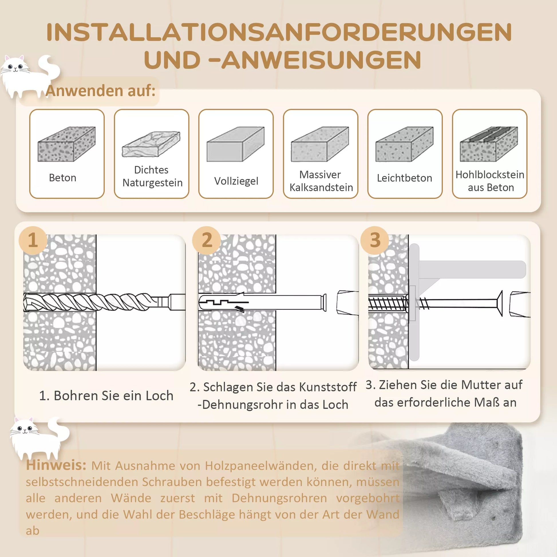 • ✔ Tvirtinama prie sienos, taupo grindų plotą ir išnaudoja jūsų namų aukštį, ką katės mėgsta
