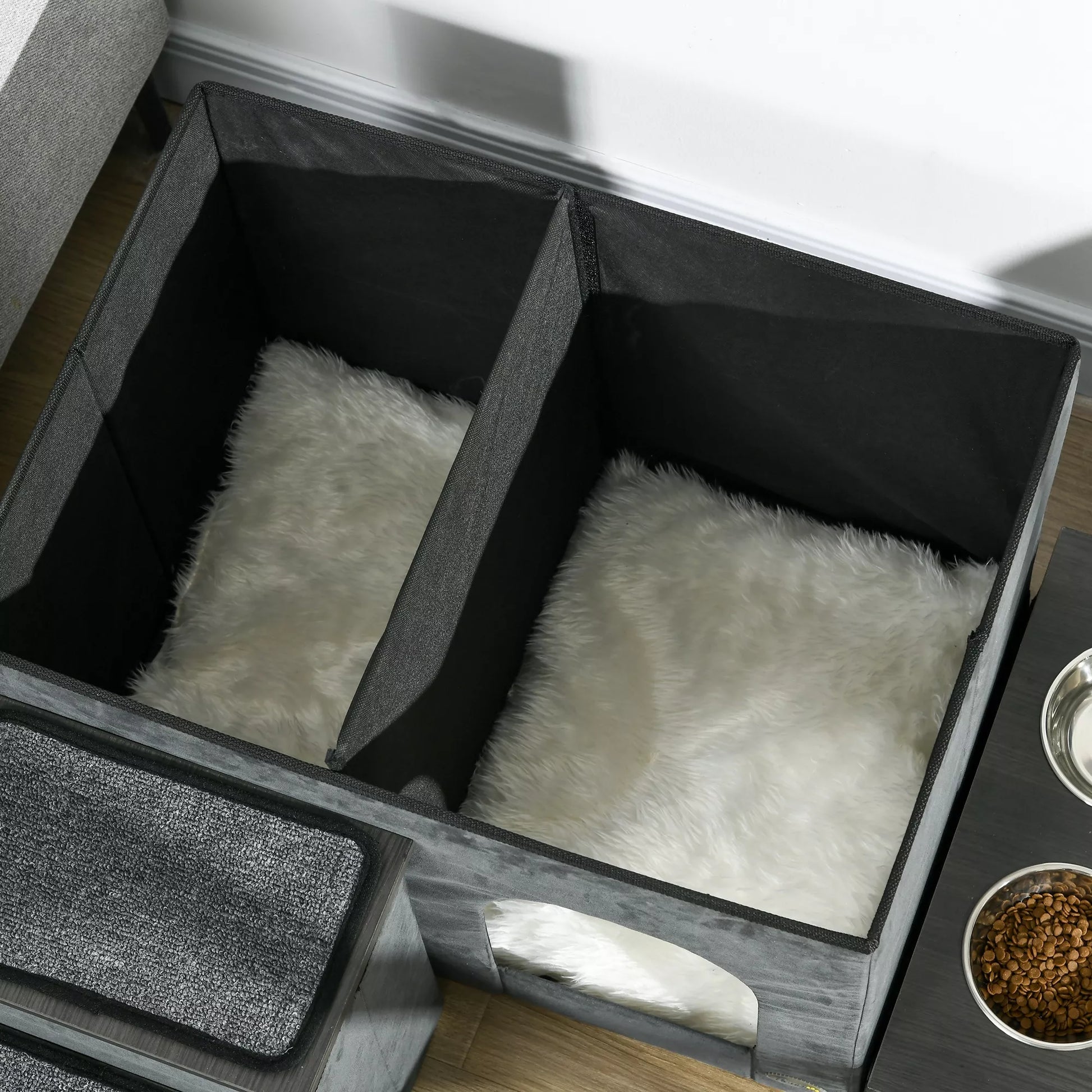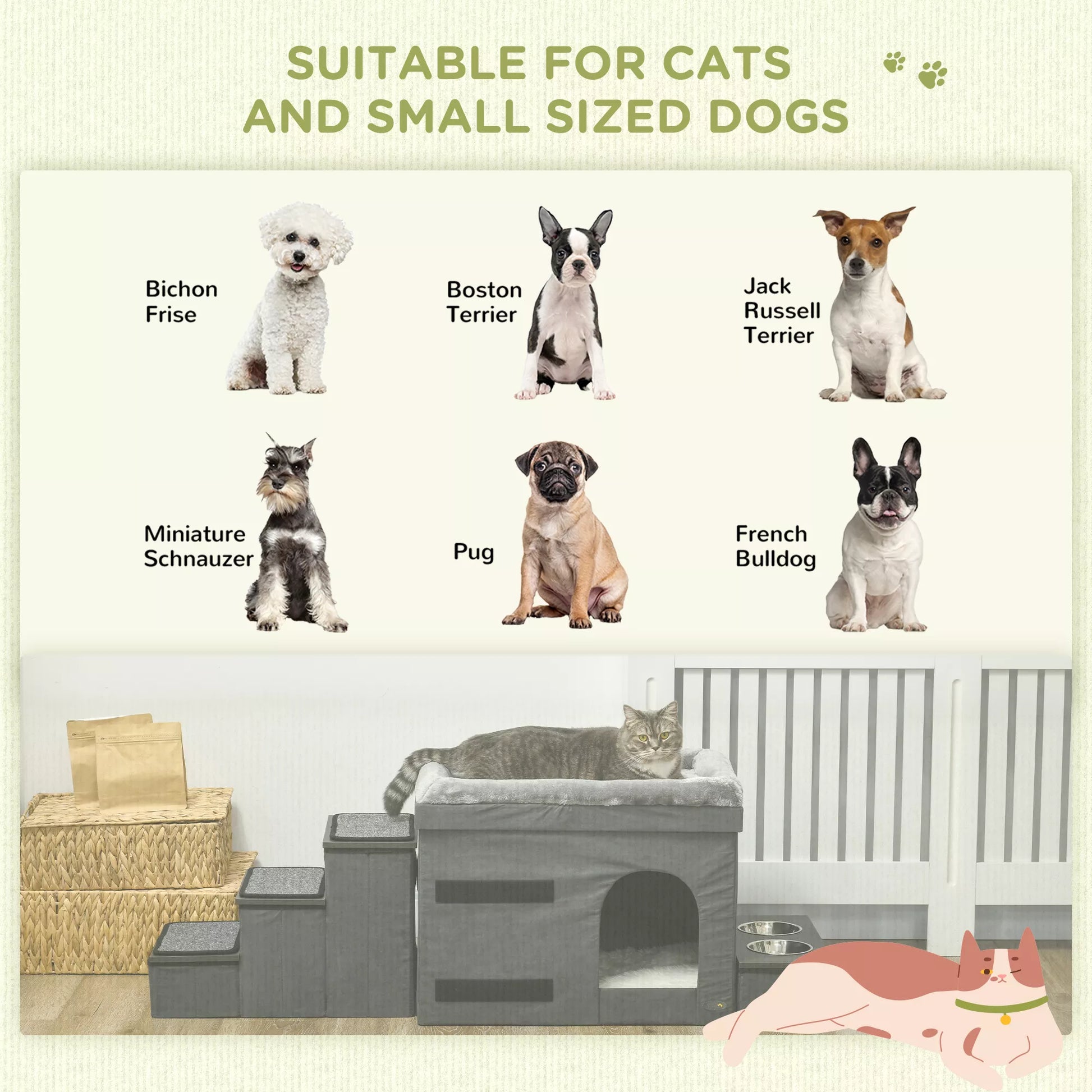 Katės namelis, būdelė, guolis, 3 laipteliai augintiniams, 2 ėdalo/vandens dubenėliai, 70 x 50 x 51 cm, Pilkas