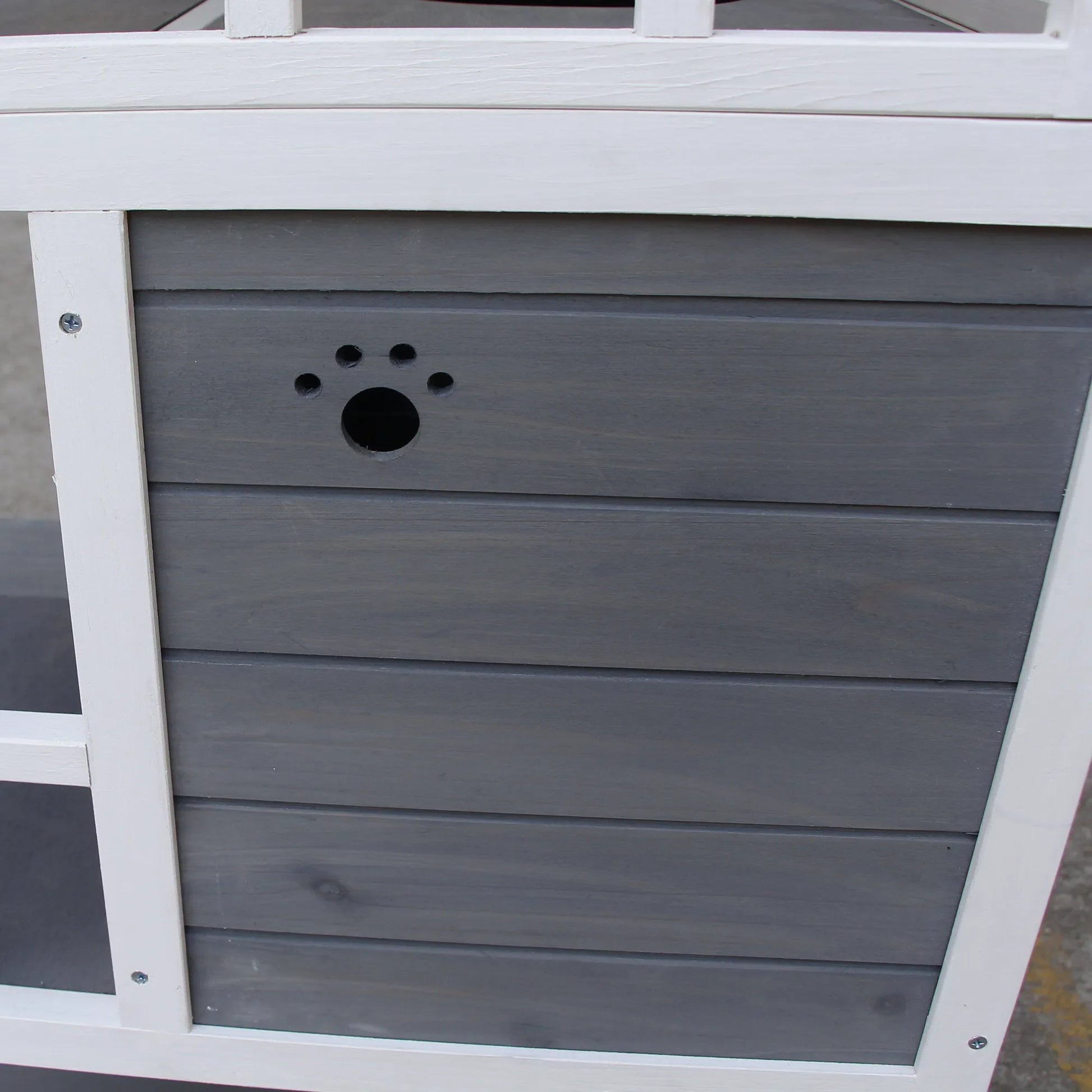 • ✔ Šis kačių namelis pagamintas iš pušies medienos, suteikia jūsų katei prieglobstį nuo vėjo ir lietaus