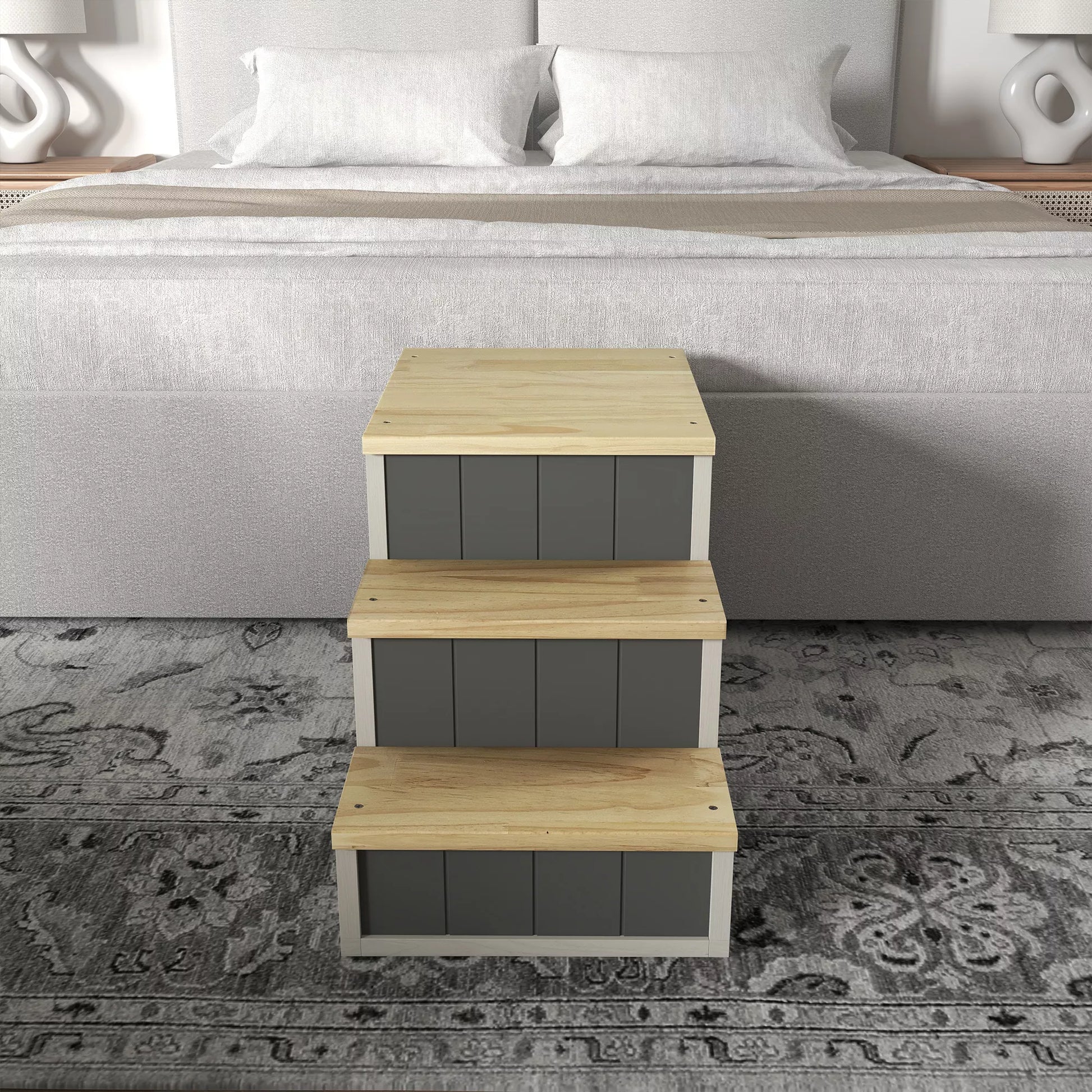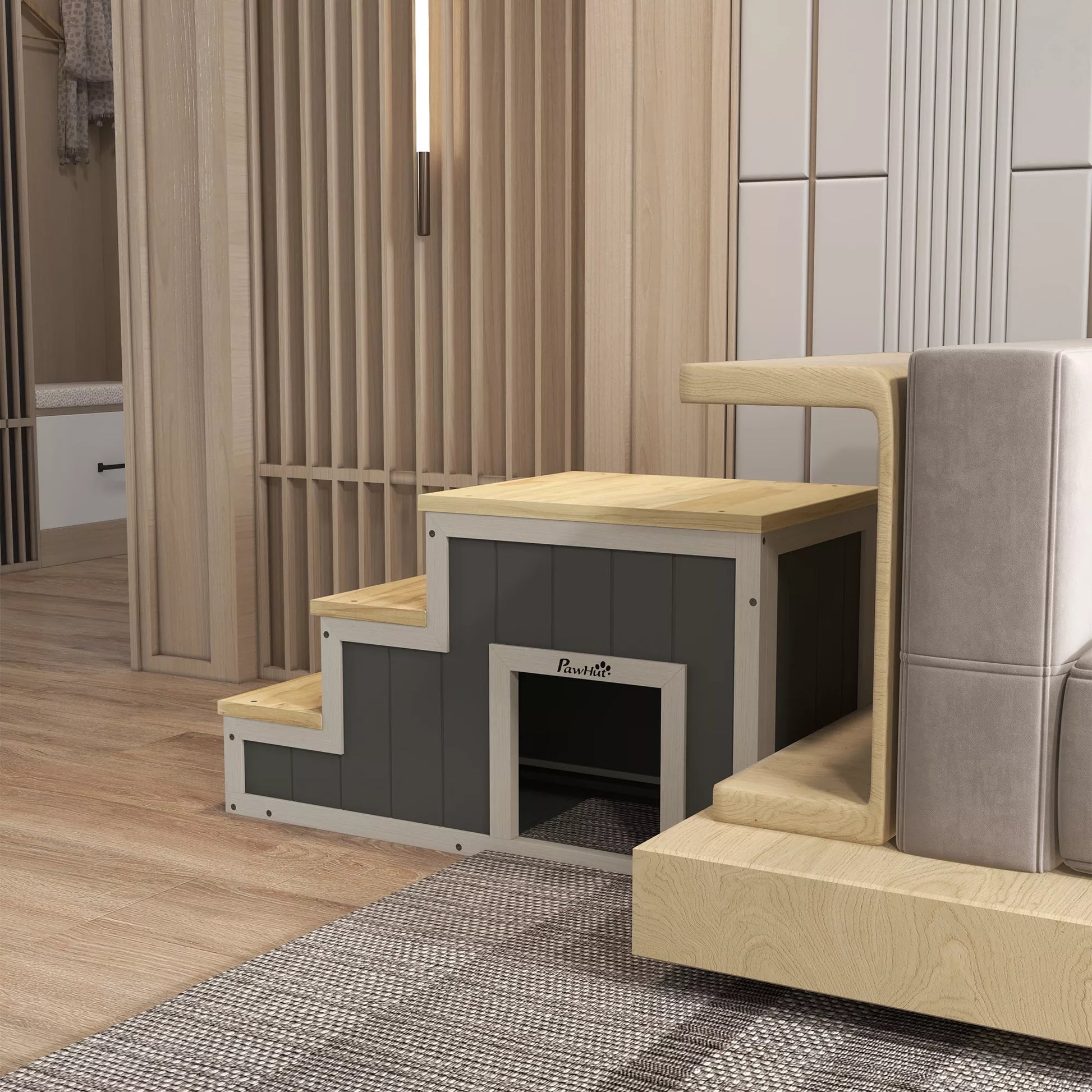 - ✔ Tris pakopų augintinių laiptinė, kad jūsų augintiniui būtų lengva pasiekti mėgstamas vietas