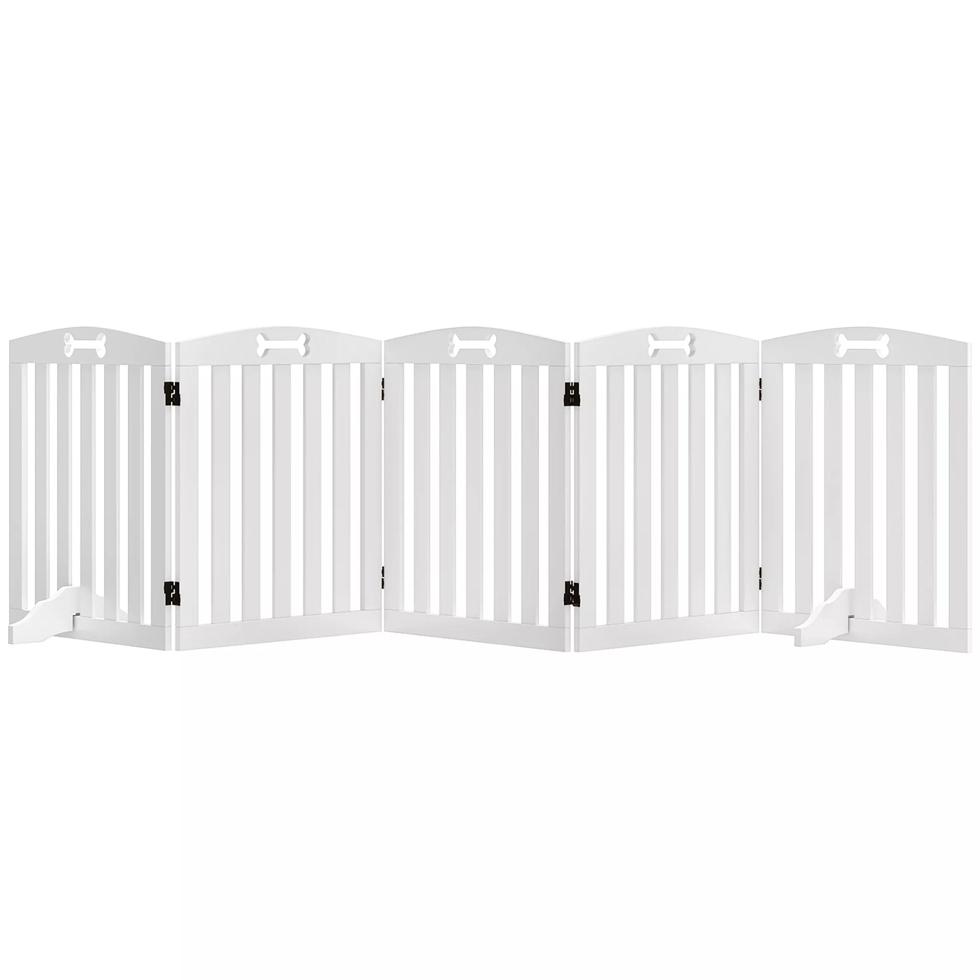 Laisvai stovinti šunų grotelė su atraminėmis kojomis, skirta durų rėmams, koridoriui, laiptams, 258 x 30 x 61 cm, balta