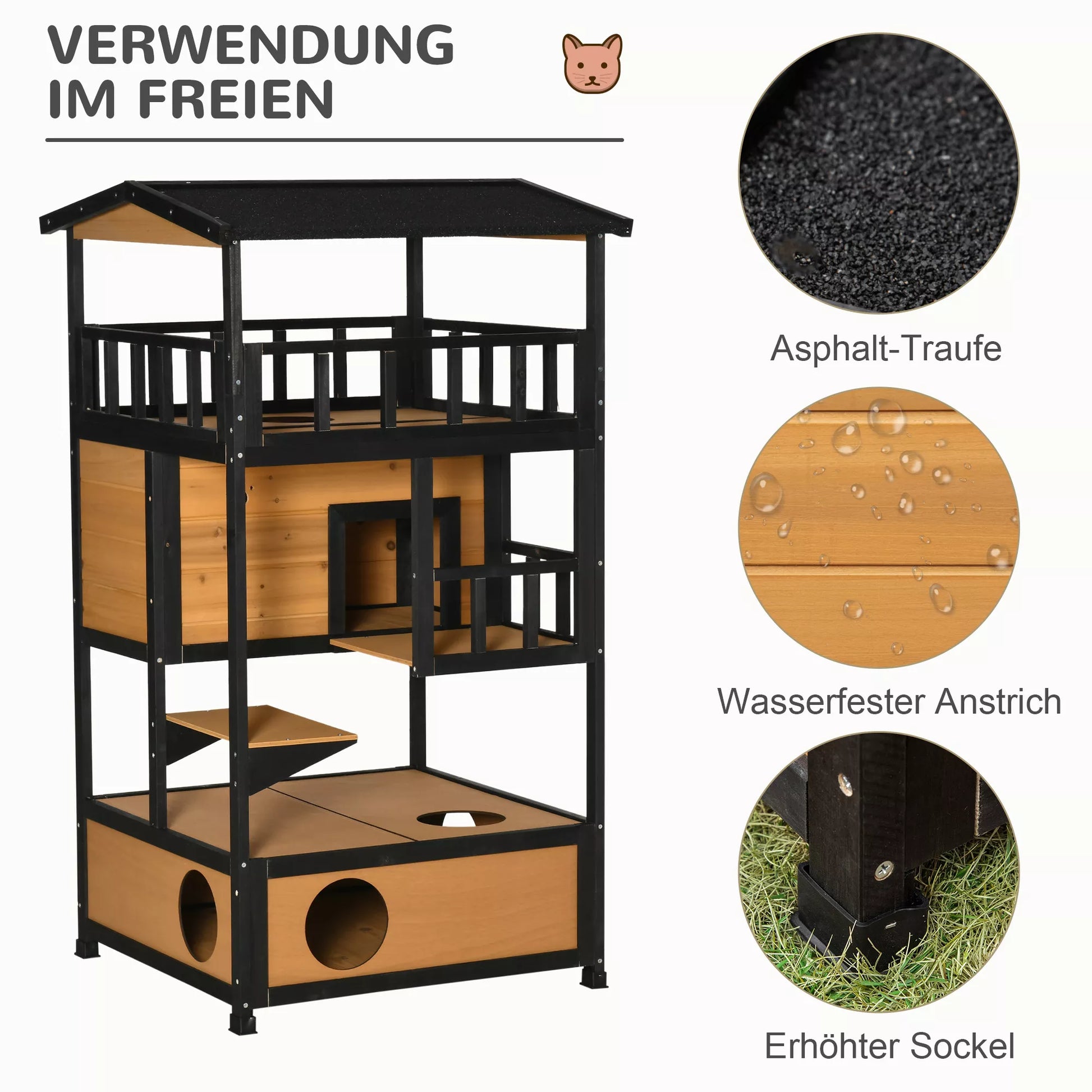 Mūsų keturių aukštų PawHut kačių namelis puikiai tinka mažoms švelniaplaukiams augintiniams. Namelis turi asfalto stogą ir vandeniui atsparų dažymą, todėl yra atsparus vandeniui ir oro sąlygoms. Namelis turi tris kačių ertmes, šokinėjimo platformas, duris ir smagų įėjimą jūsų katei. Apatinėje ertmėje galima įrengti kačių tualetą. Šis kačių namelis yra nuostabūs namai jūsų katėms.