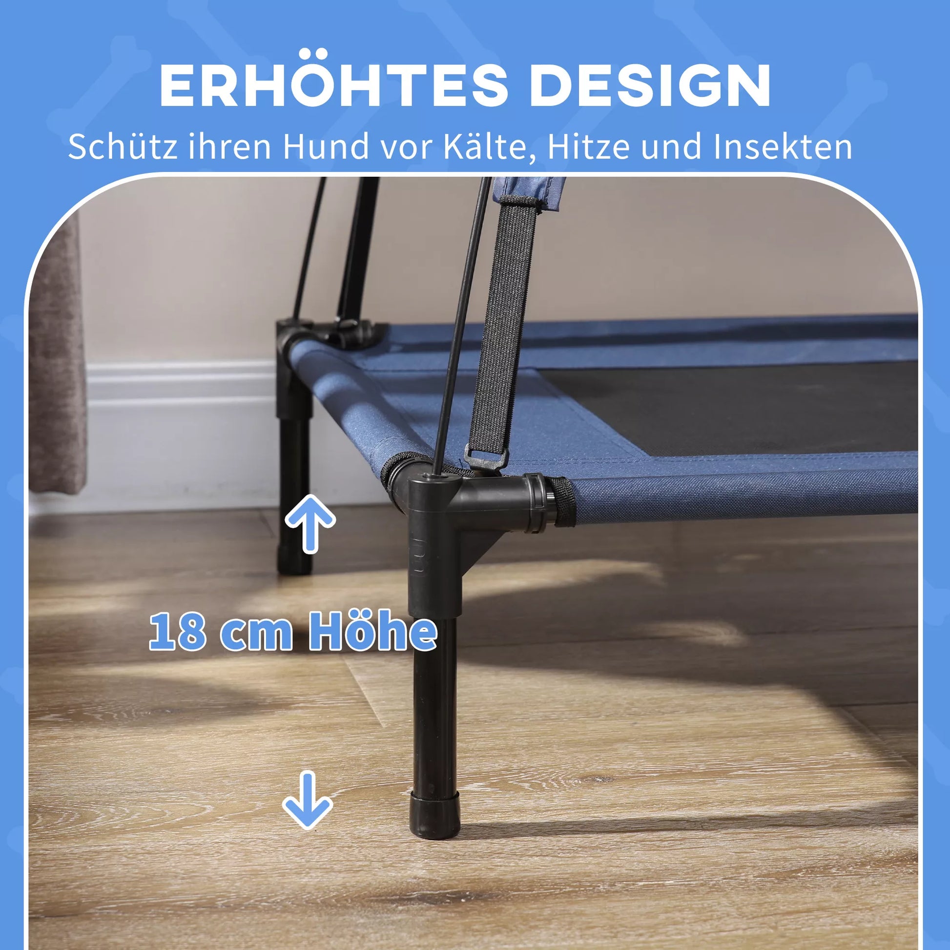 Dovanokite savo augintiniui geriausią poilsį su mūsų stilinga augintinio lova! Paaukštintą šunų gultavietę laiko keturi milteliniu būdu dengti metaliniai vamzdžiai, aplink kuriuos apjuostas kvėpuojantis tinklinis audinys. Stogelis suteiks jūsų augintiniui malonų pavėsį net vasarą ir gali būti lengvai reguliuojamas. Stabili konstrukcija apsaugo nuo siūbavimo ir vertimosi, todėl jūsų mylimas augintinis galės ramiai ilsėtis.