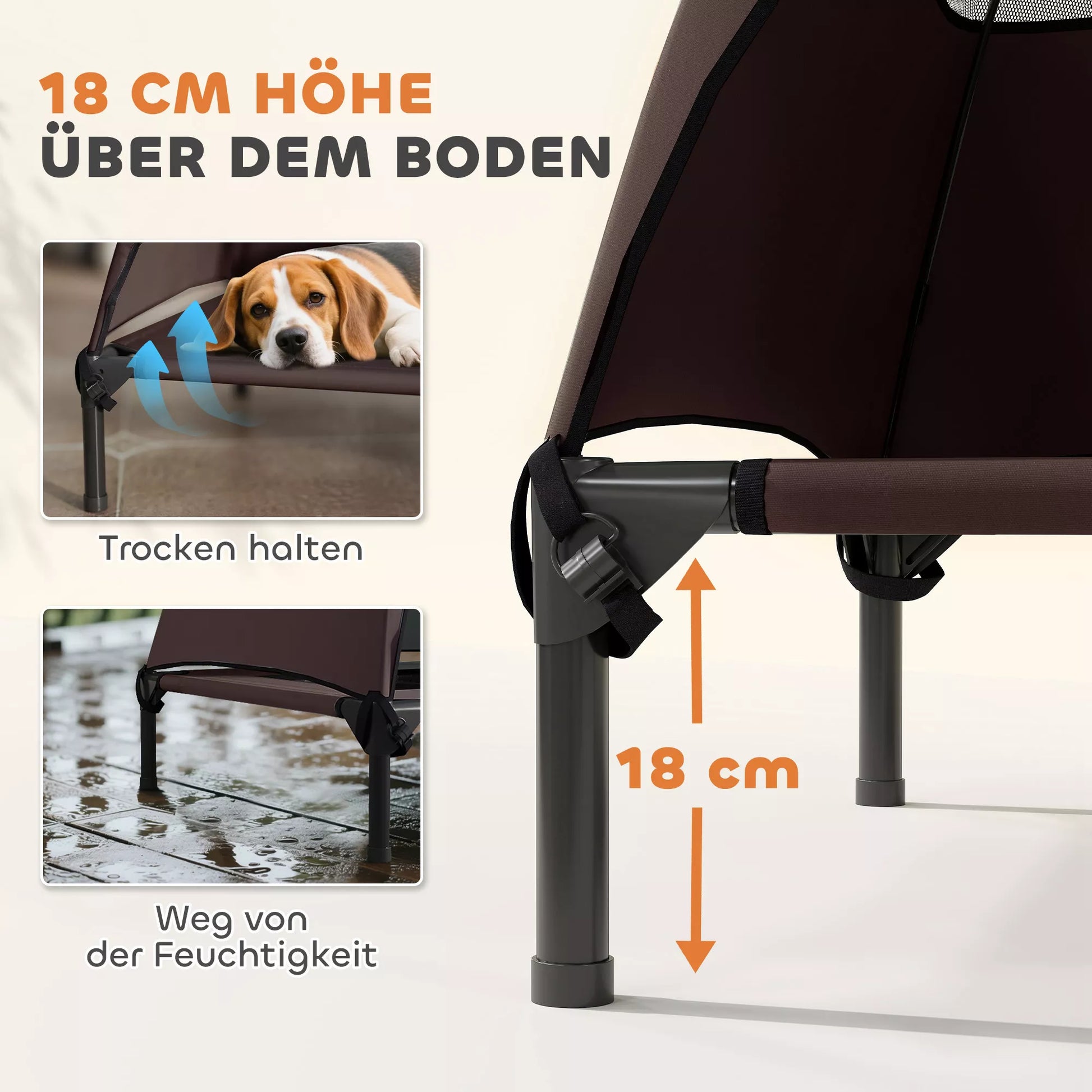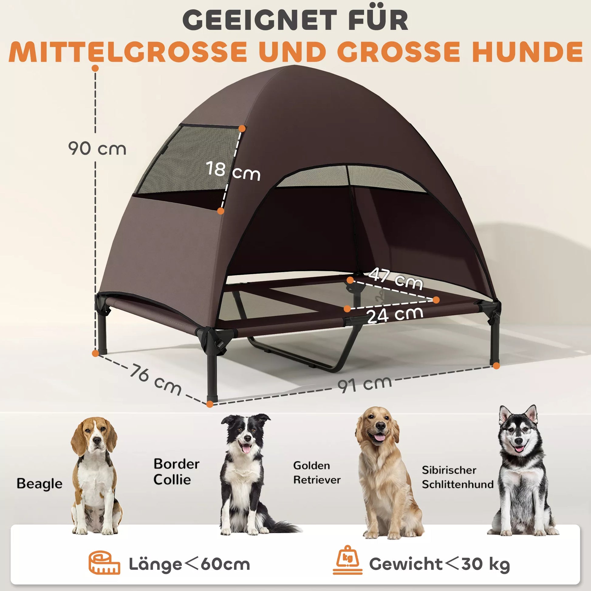 Lauko šunų gultas su stogeliu, paaukštinta šunų lova dideliems šunims, 91 x 76 x 90 cm, kavos