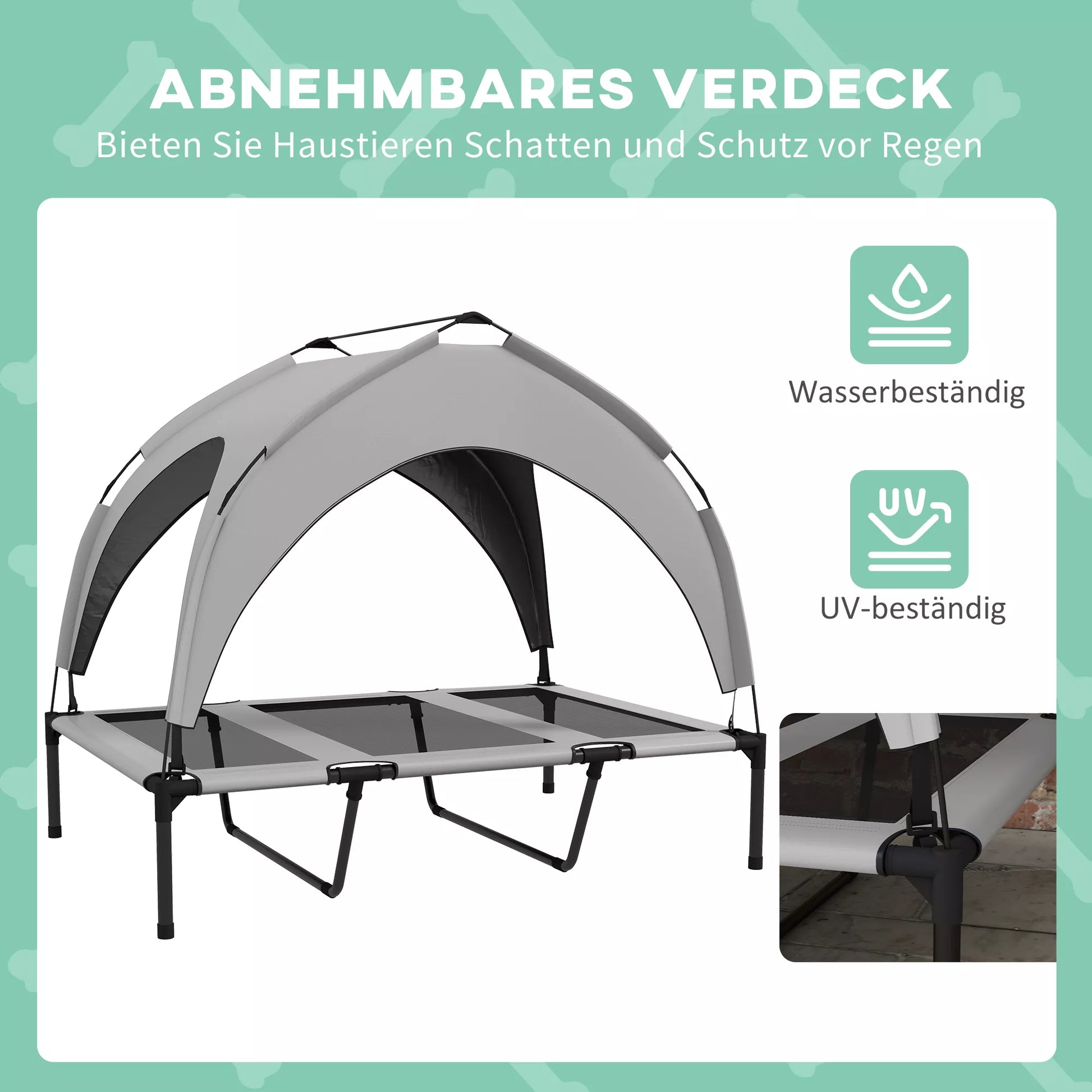 Lauko šunų lova, atspari oro sąlygoms, su paaukštintu rėmu, 106 x 76 x 94 cm, šviesiai pilkos spalvos