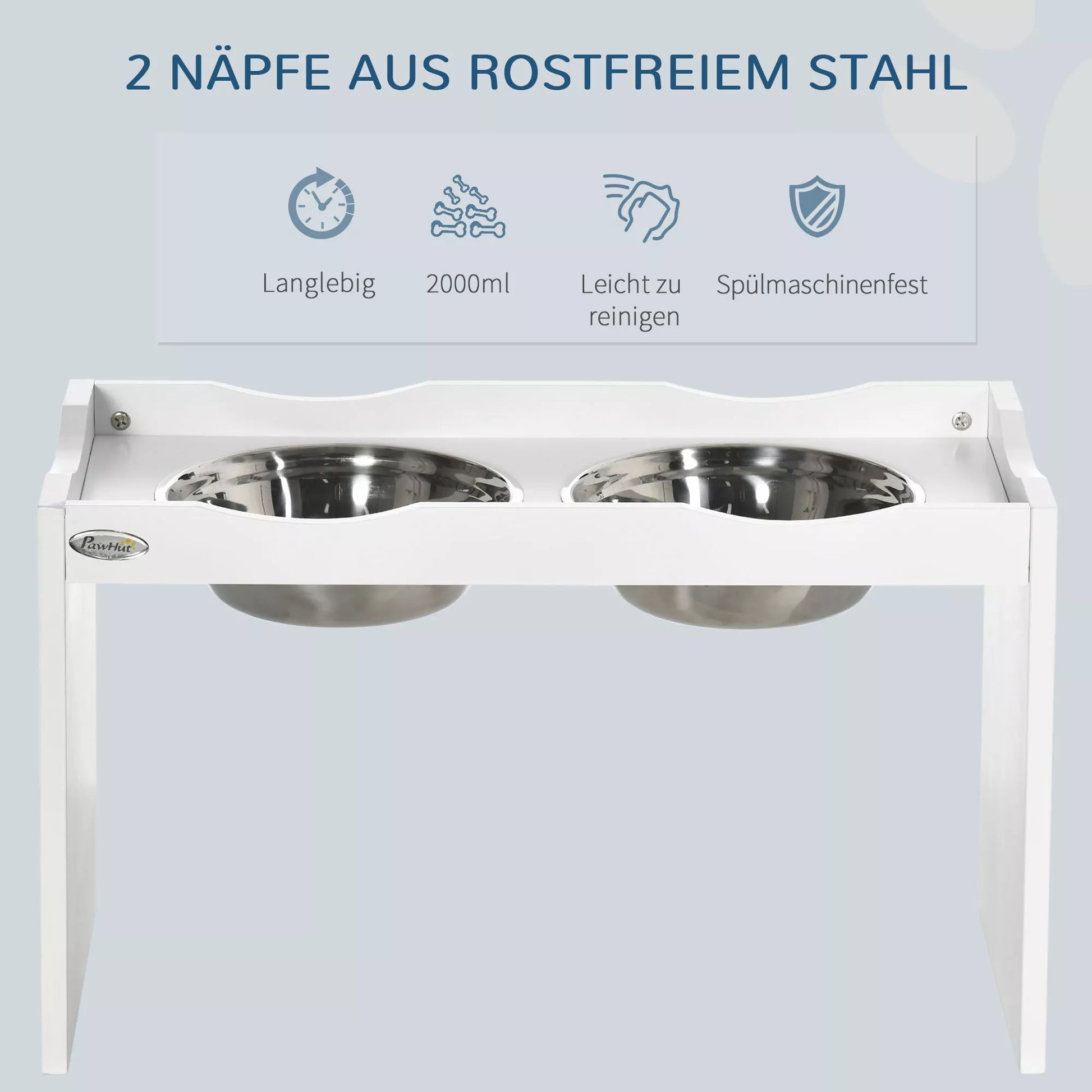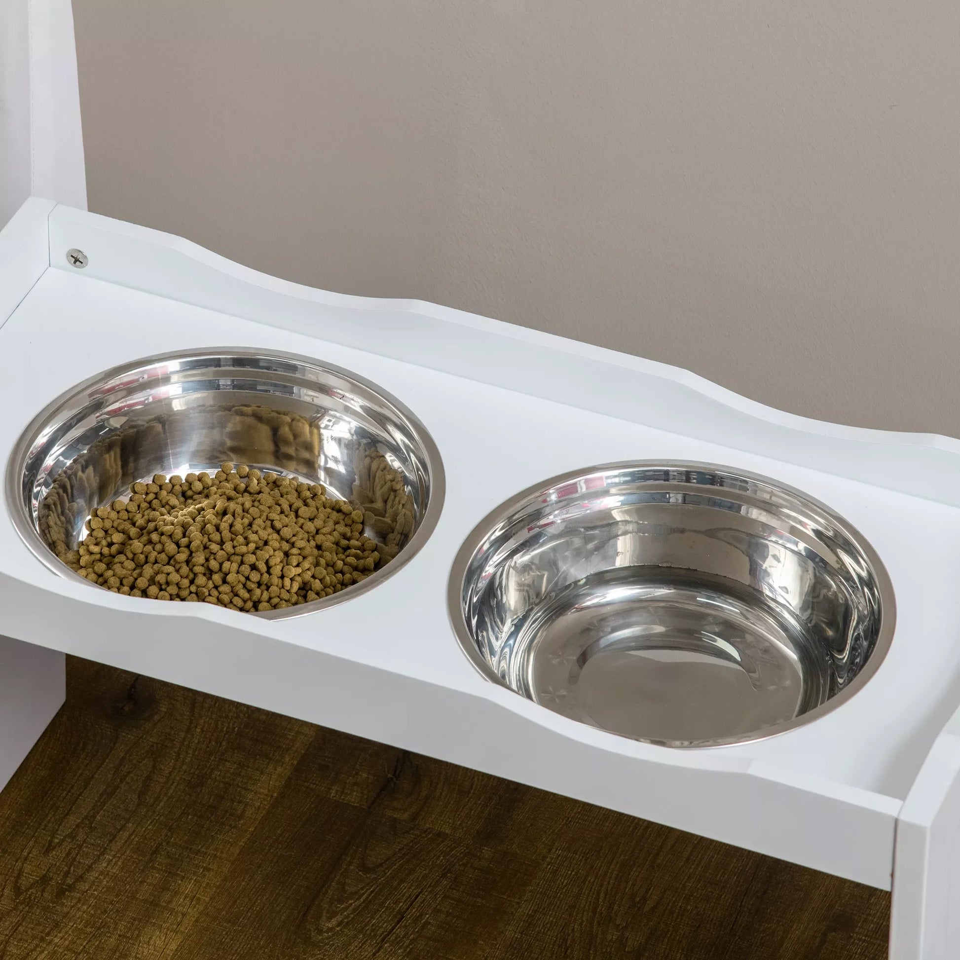 Ši moderni šėrykla leidžia jūsų šuniui priimti patogią ir tausojančią valgymo padėtį, todėl jam nereikės giliai lenktis ir nereikalingai apkrauti sprando. Šėryklos korpuse integruoti du nerūdijančio plieno dubenėliai, kuriuos galima išimti ir valyti. Paaukštintas kraštas ir apatinė platforma padeda sulaikyti išsipylusį maistą ir apsaugo jūsų grindis. Elegantiškai balta, ši šėrykla puikiai dera prie bet kokio interjero.