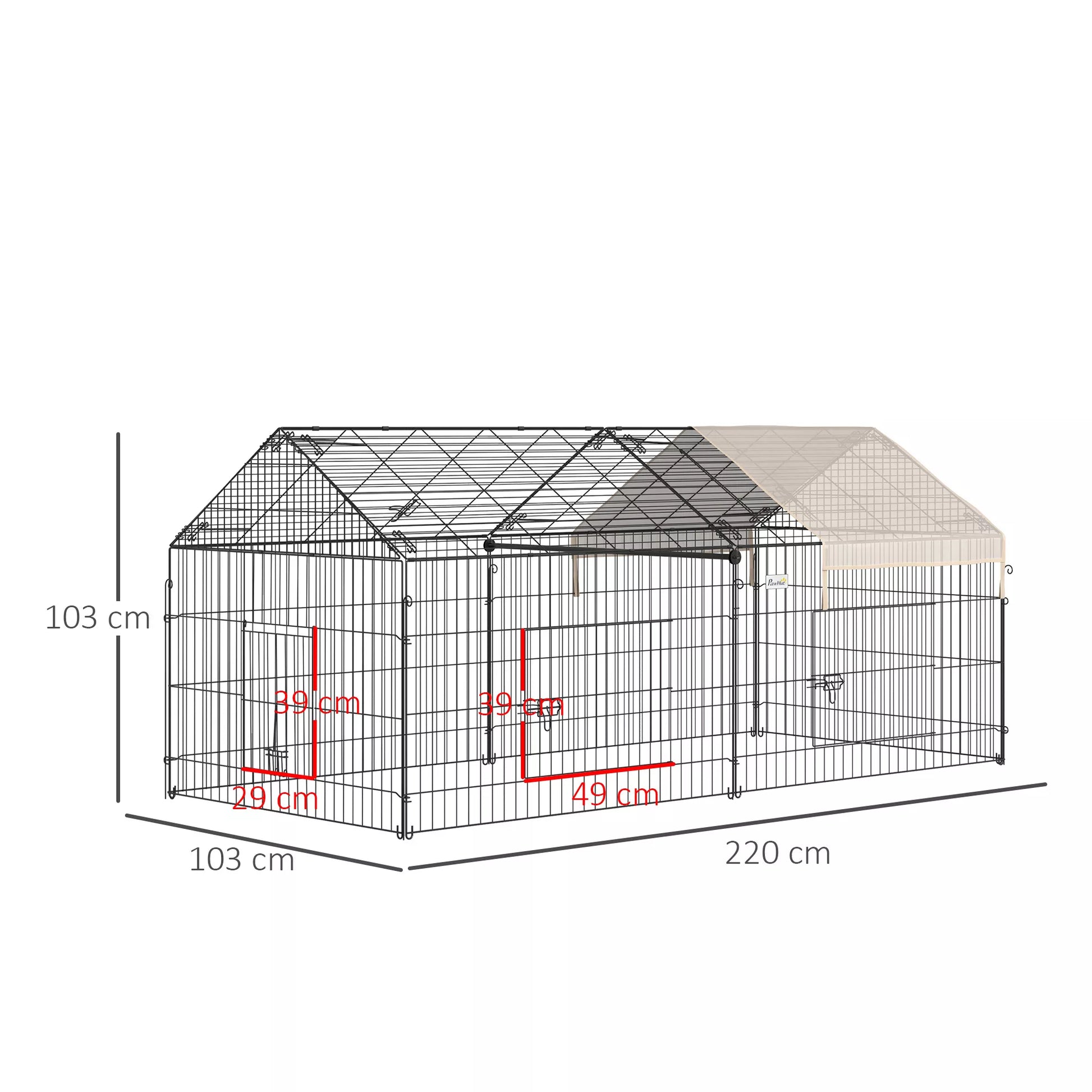 Maniežas smulkiems gyvūnams, lauko aptvaras, 4 kuoliukai į žemę, 220 cm x 103 cm x 103 cm, Juoda + smėlio