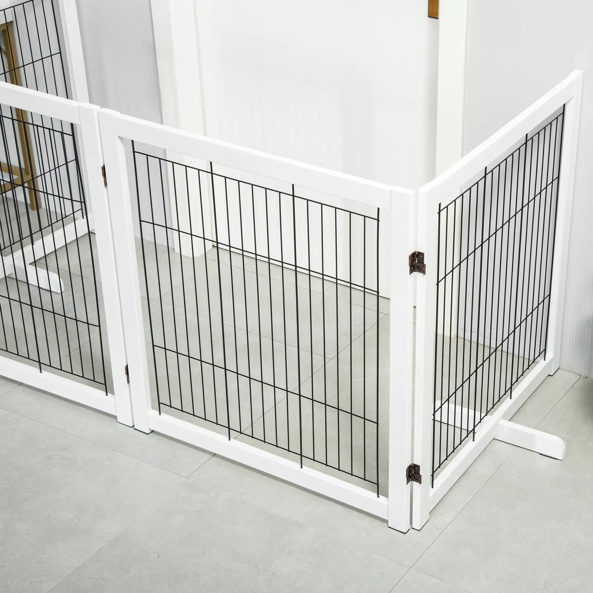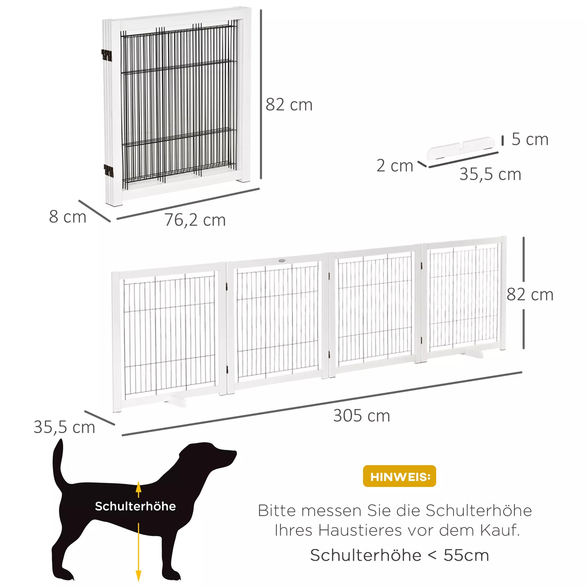Mediniai apsauginiai varteliai šunims, sulankstomi, plieniniai, balti, 305 x 35,5 x 82 cm