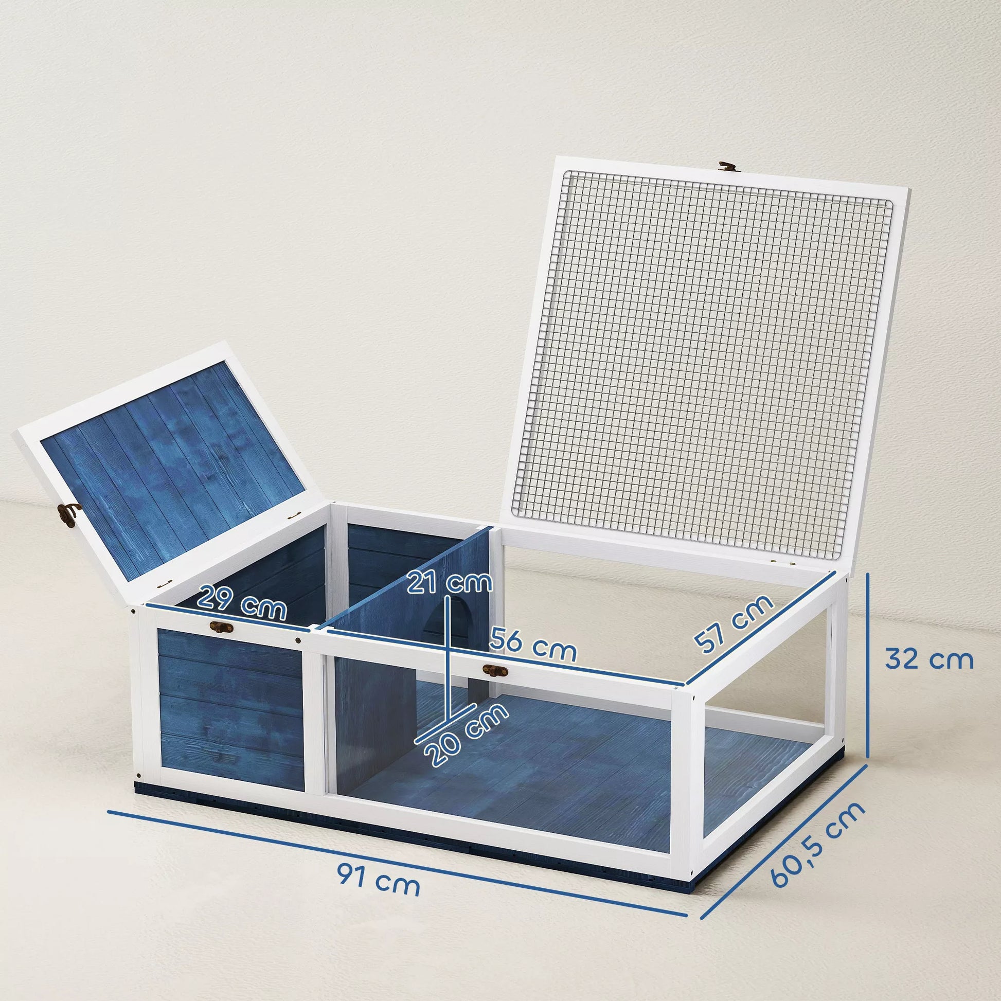 Medinis vėžlių namelis / aptvaras su atidaromu viršumi, 91x60,5x32 cm, mėlynas