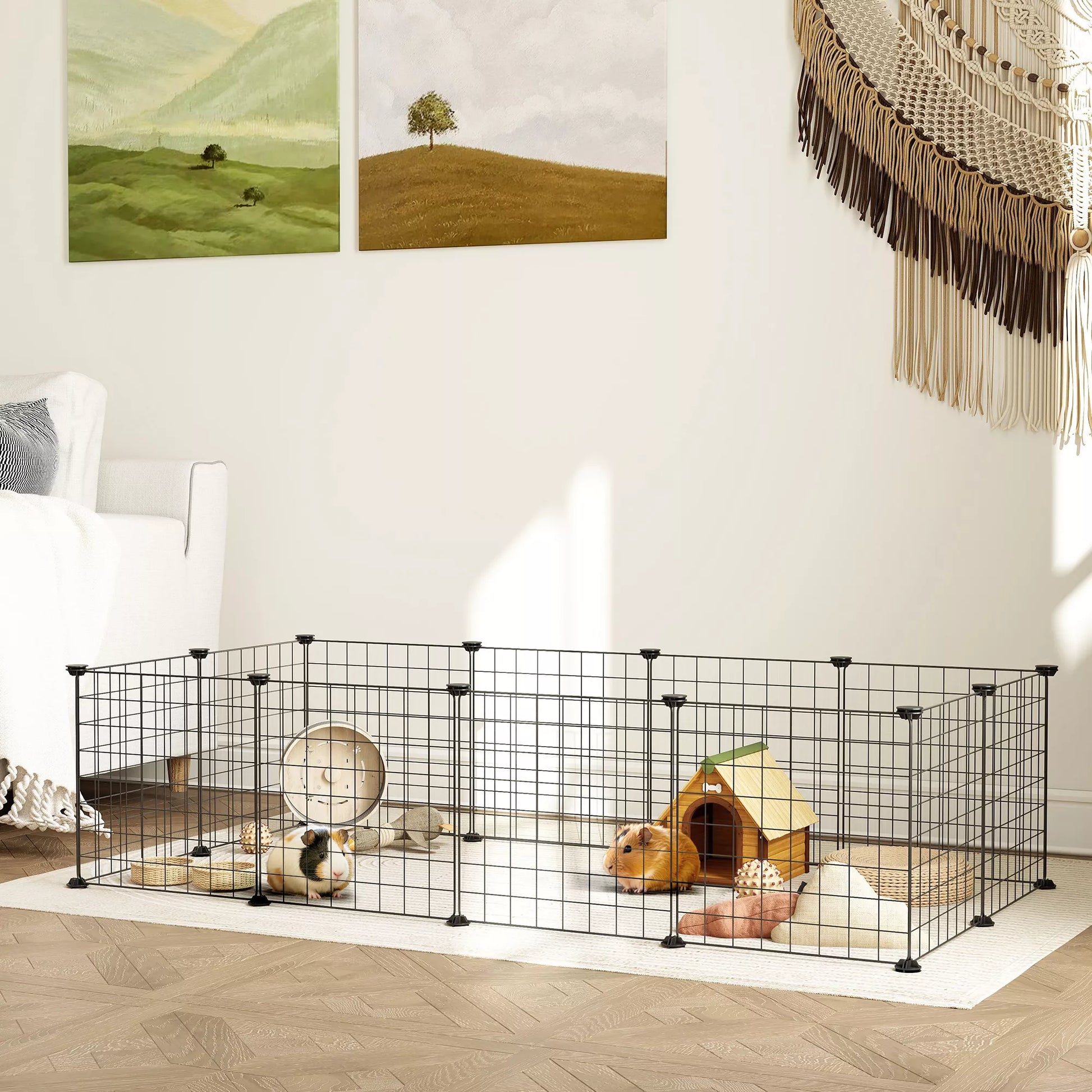 Metalinės grotelės aptvaras smulkiems gyvūnams, lauko aptvaras, maniežas, narvas, lanksčiai formuojamas, juodas, 106 x 73 x 36 cm