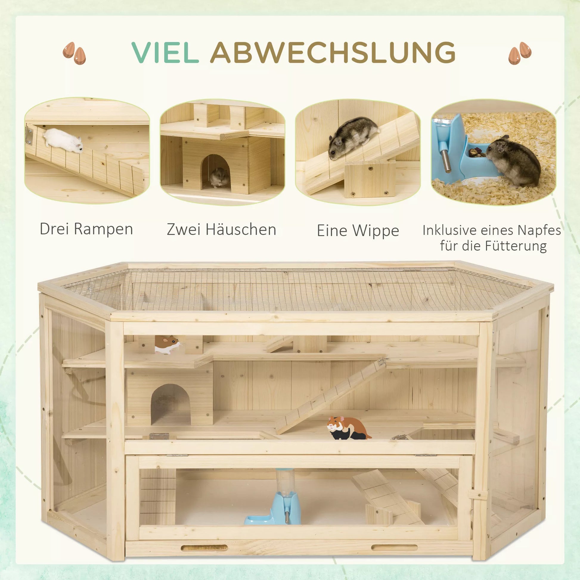 Narvas smulkiems gyvūnėliams, graužikų narvas, graužikų namelis su 1 rampa, 1 sūpynėlė, nuimamas dugno padėklas, eglės mediena, natūralus