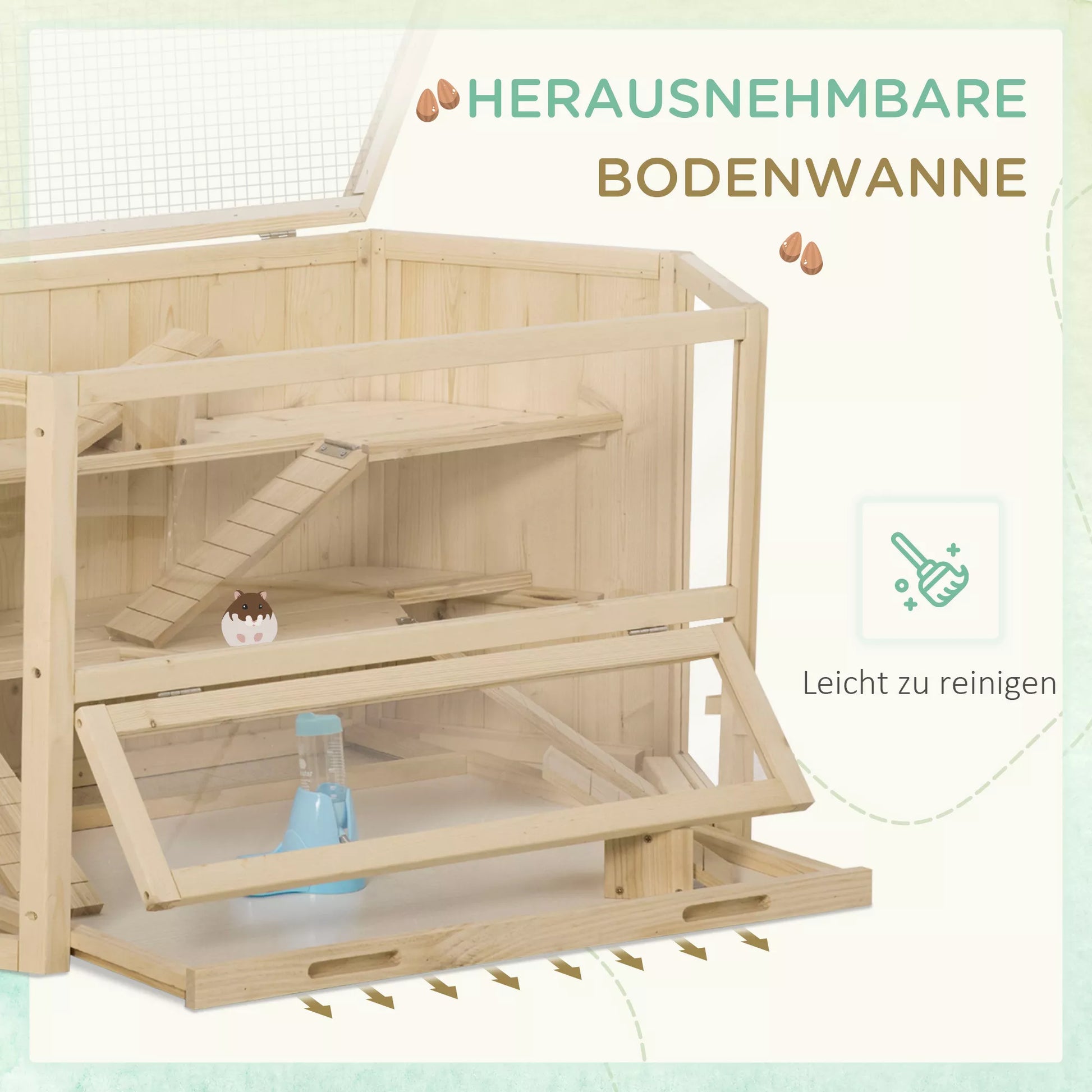 Atraskite žiurkėno narvą – idealų namą jūsų mažiesiems draugams! Trys lygiai suteikia jūsų augintiniams pakankamai vietos miegoti, žaisti ir ėsti. Tvirtas medžio ir vielos tinklo konstrukcijos mažylių narvas užtikrina optimalų vėdinimą, o priekyje esantis organinio stiklo langas leidžia bet kada pažvelgti į jūsų augintinius. Pakeltas graužikų narvo dizainas apsaugo nuo šalčio ir drėgmės, kad jūsų mažyliai jaustųsi visiškai patogiai.