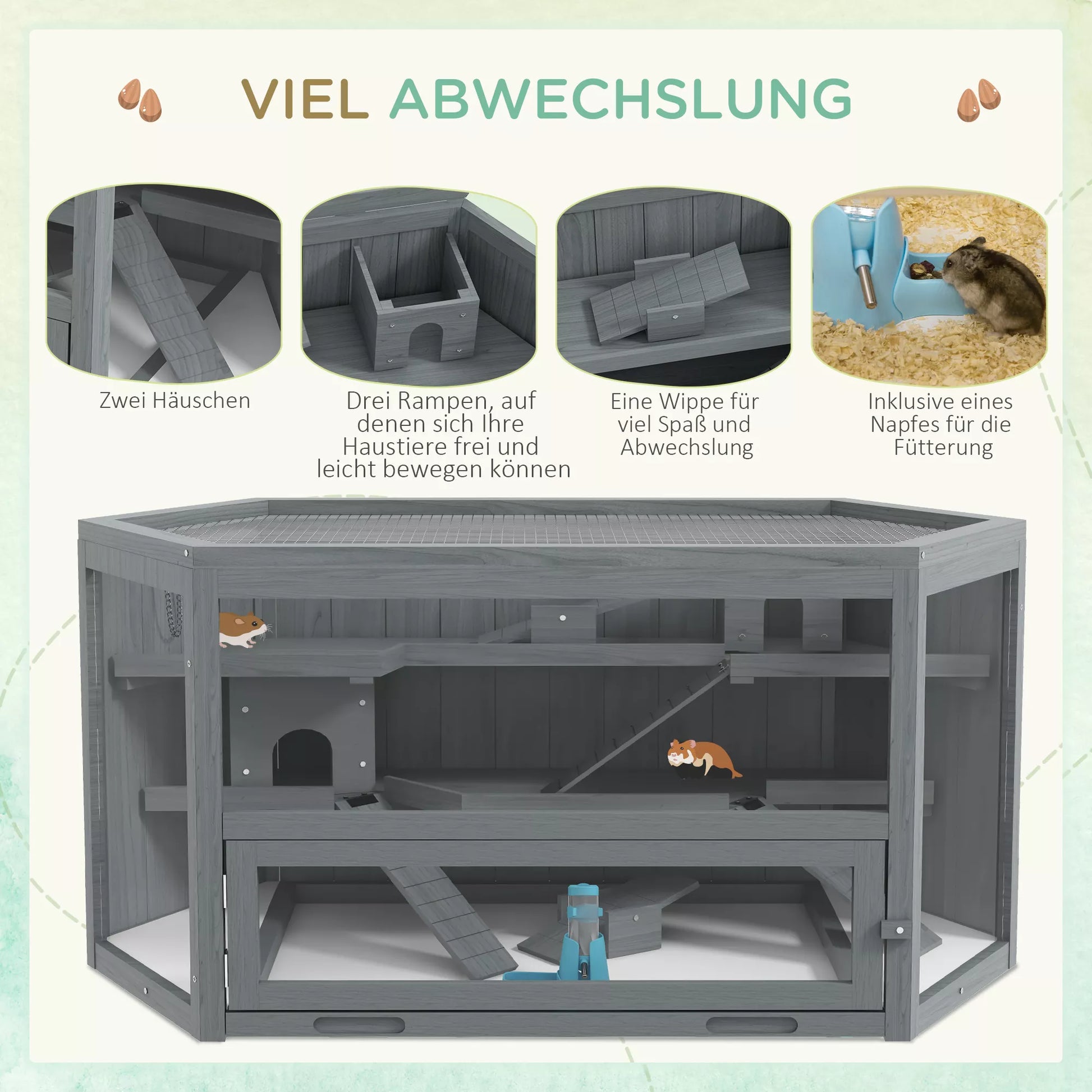 Atraskite žiurkėno narvelį – idealius namus jūsų mažiesiems draugams! Trijose pakopose jūsų augintiniai ras pakankamai vietos miegoti, žaisti ir ėsti. Tvirtas medžio ir vielos tinklo konstrukcijos dizainas užtikrina optimalią ventiliaciją, o priekyje esantis plexiglass langas leidžia bet kada pažvelgti į jūsų augintinius. Pakeltas dizainas apsaugo nuo šalčio ir drėgmės, kad jūsų mažyliai jaustųsi visiškai patogiai.