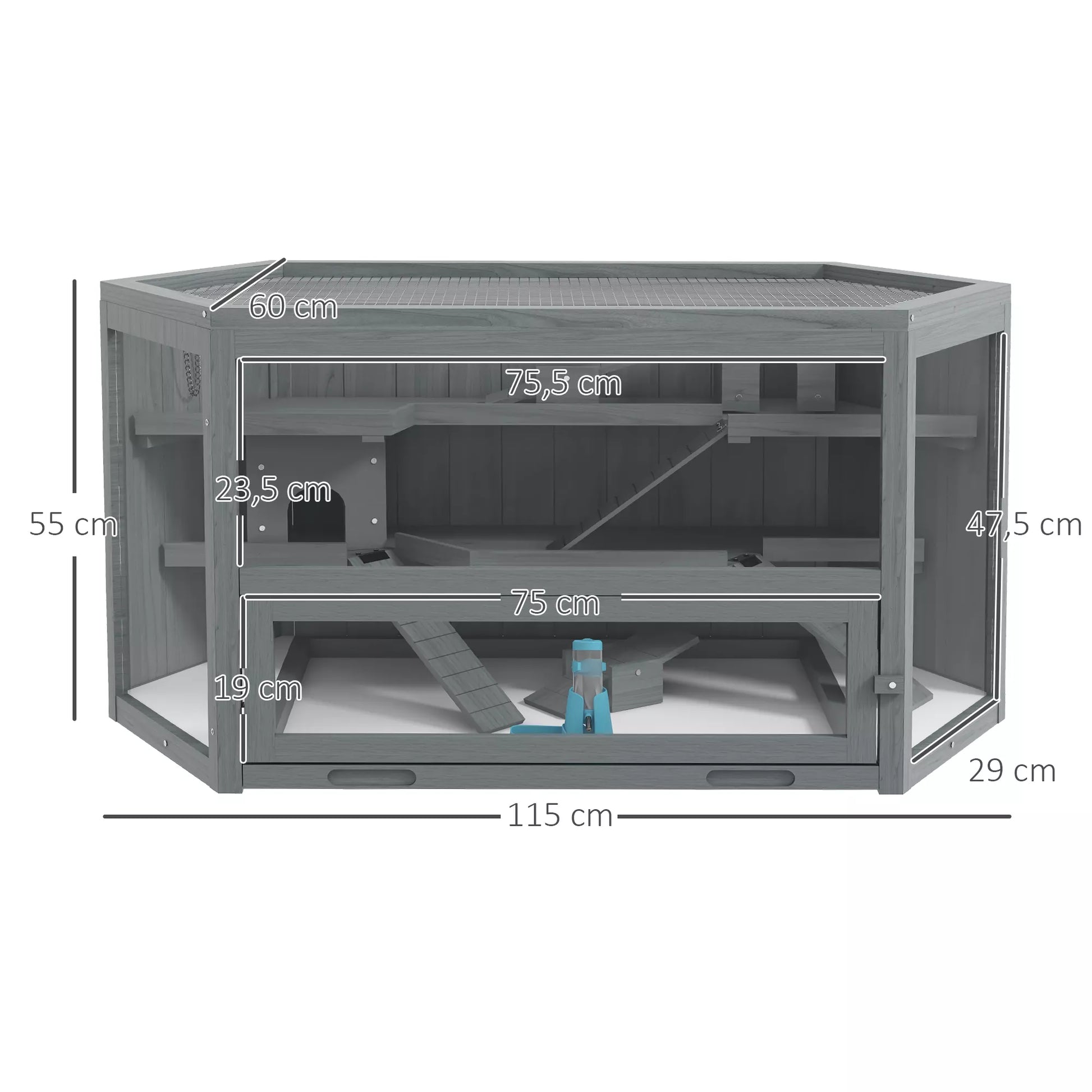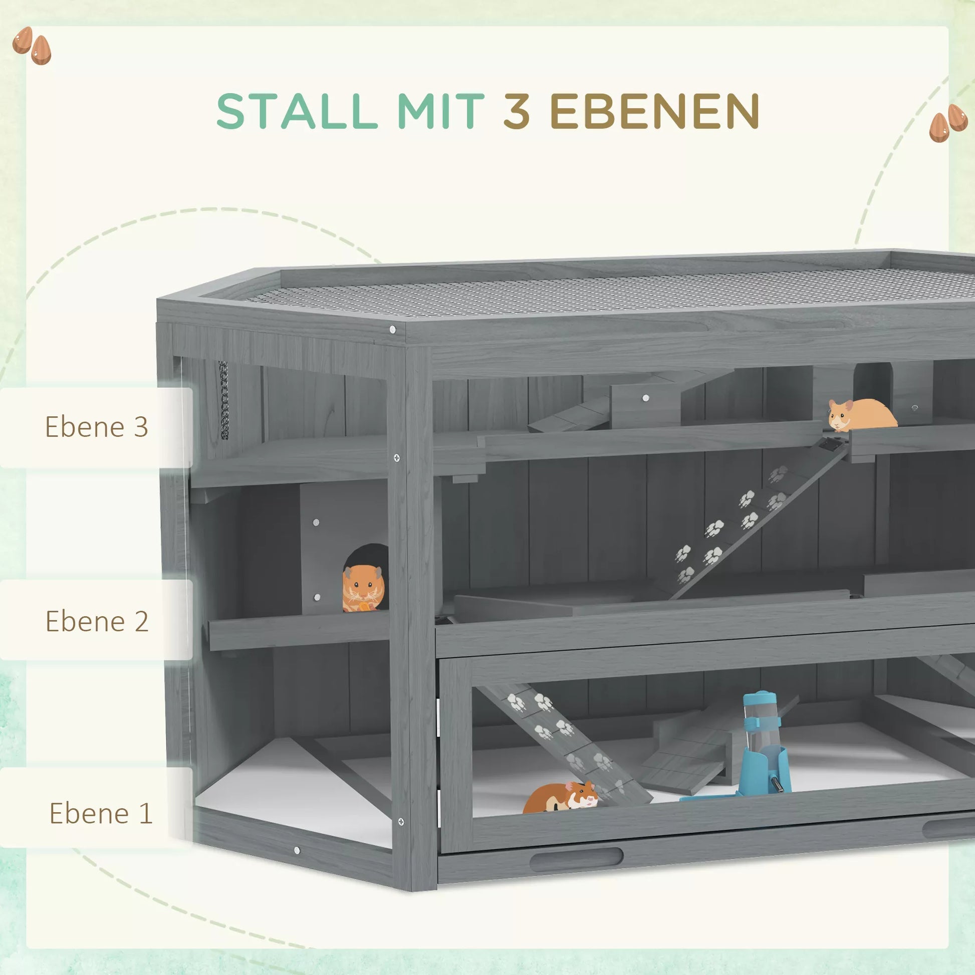 Narvas žiurkėnui, 3 aukštų, su išimamu dugnu, Medis/Metalas, 115x60x55 cm