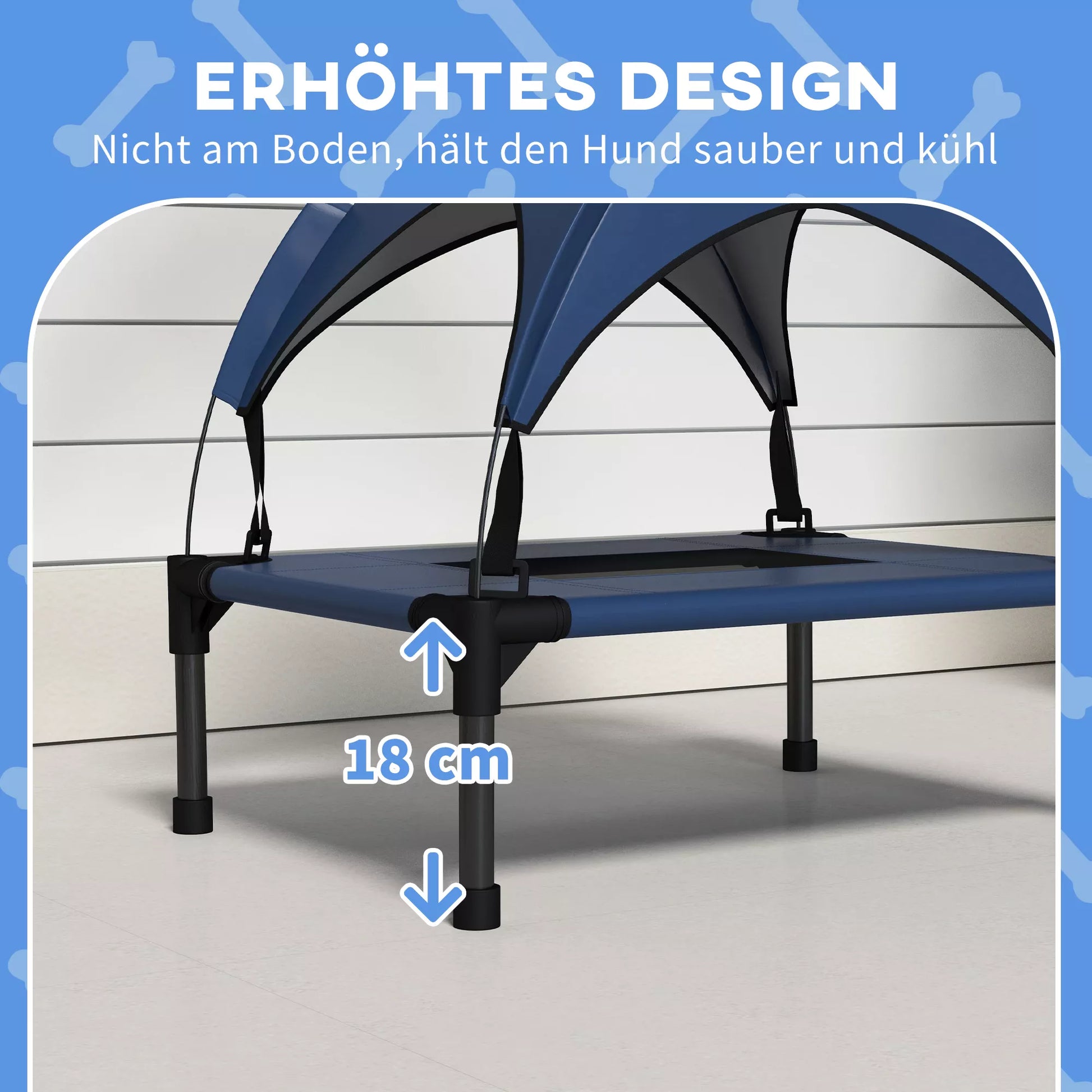 Nešiojamas lauko šunų guolis su stogeliu, atsparus vandeniui, iki 30 kg, 61 x 46 x 63 cm, tamsiai mėlynas