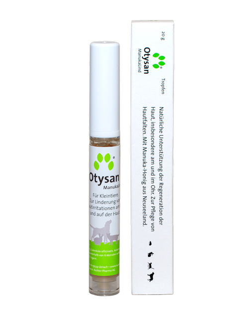 Otysan lašai šunims, katėms ir triušiams, ramina išorinės ausies pažeidimus. Otysano lašai skatina odos regeneraciją, ypač ausies srityje ir aplink ją. Unikalus botaninių ingredientų ir aukštos kokybės produktas. Manuka medaus derinys palaiko natūralias odos funkcijas ir ramina klausos kanalą.
