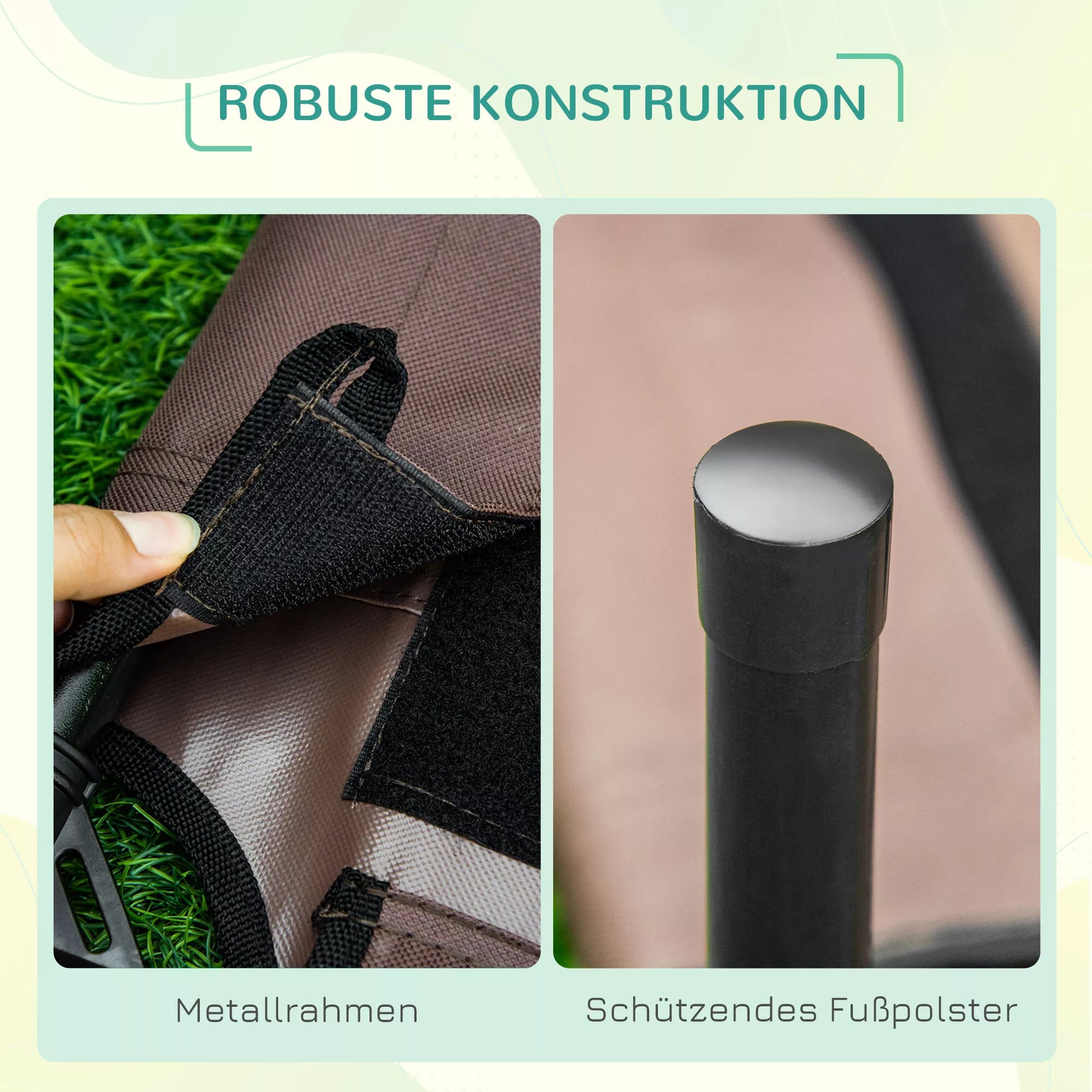 Padovanokite savo augintiniui geriausią poilsį su mūsų stilinga augintinio lova nuo ! Paaukštinta šunų gulimoji vieta yra atremiama keturiais milteliniu būdu dažytais metaliniais vamzdžiais, aplink kuriuos apvyniotas kvėpuojantis tinklinis audinys. Stogelis jūsų augintiniui suteikia malonų pavėsį net ir vasarą ir gali būti patogiai pastatytas. Stabili konstrukcija apsaugo nuo siūbavimo ir kritimo, todėl jūsų mylimas augintinis gali miegoti ramiai.