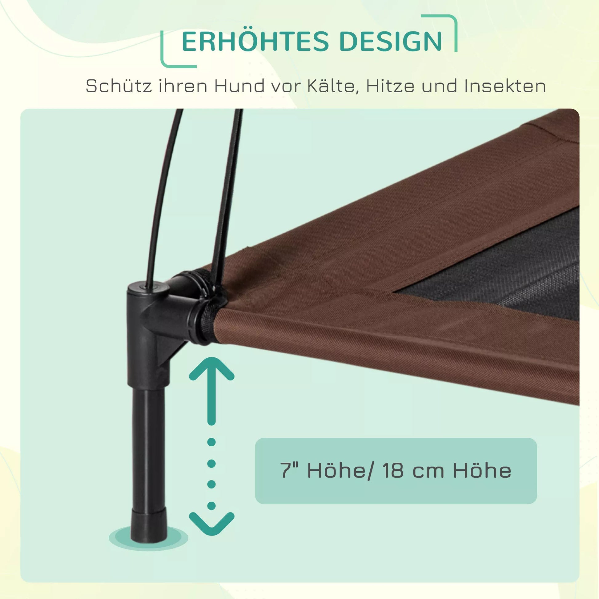 Pakeltas šunų guolis su stogeliu, naminių gyvūnėlių lova lauke su stogu, kvėpuojantis, tafto audinys kempingui, kavos spalvos, 76 x 61 x 73 cm