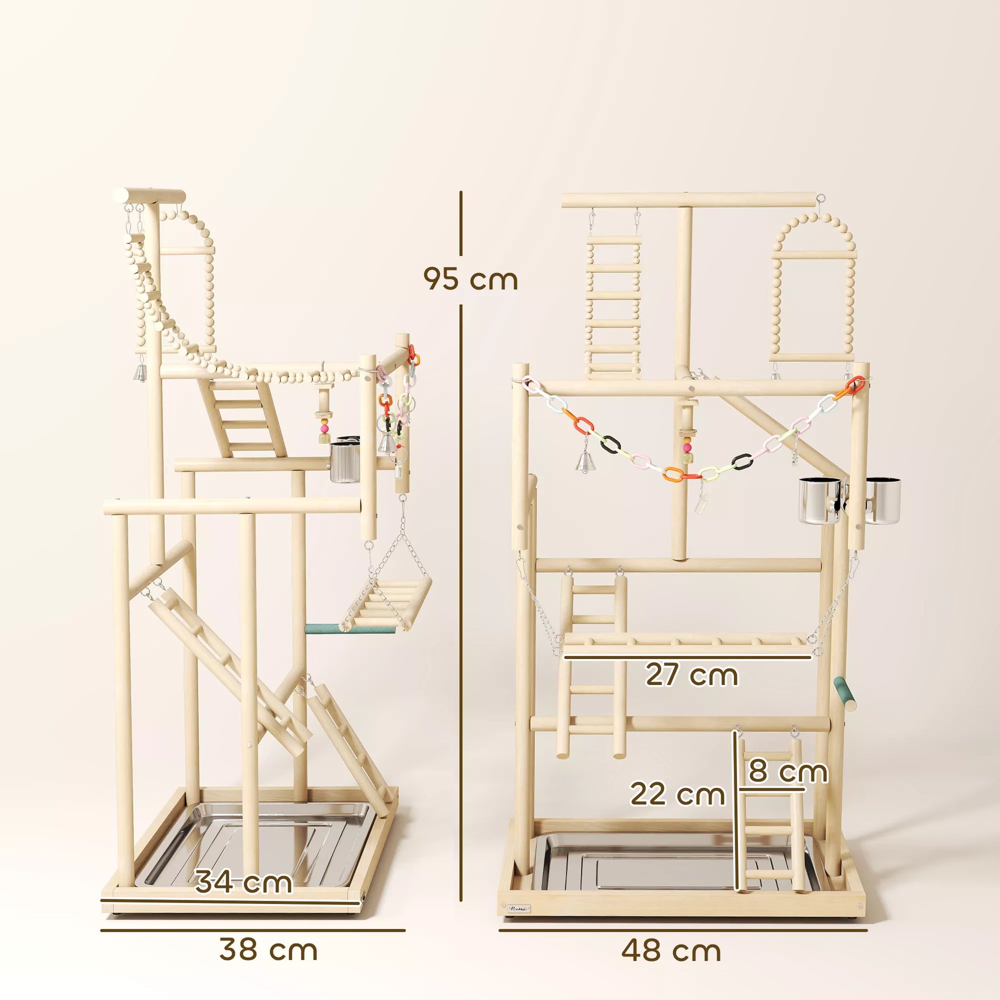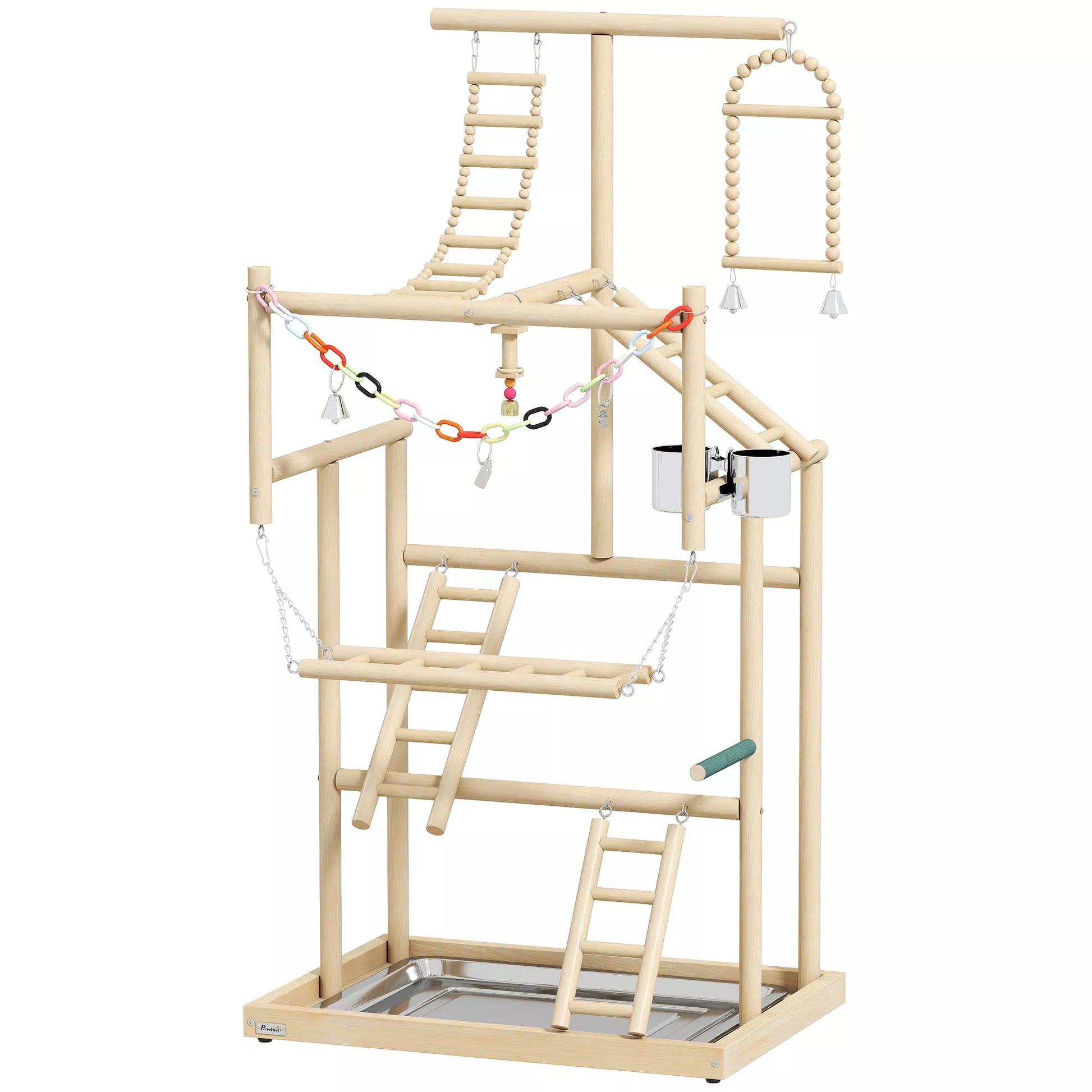 Paukščių stovas, paukščių stovų rinkinys, 4 lygiai, nerūdijančio plieno padėklas, žaislai, natūrali mediena