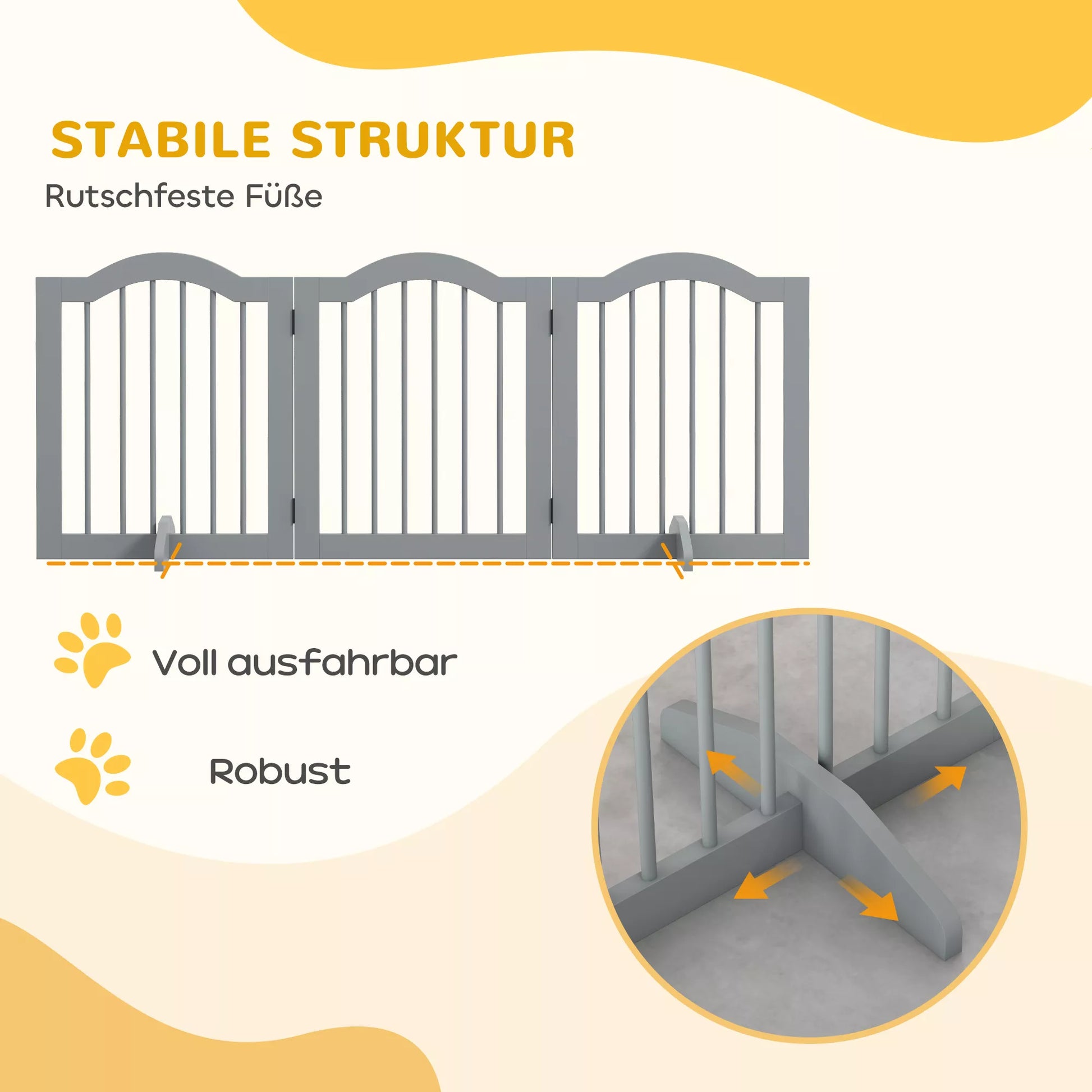 PawHut 3 dalių šunų atitvaras, 154,5 x 61 cm, sulankstomas šunų aptvaras su durelėmis, 2 atraminės kojelės, šviesiai pilkas