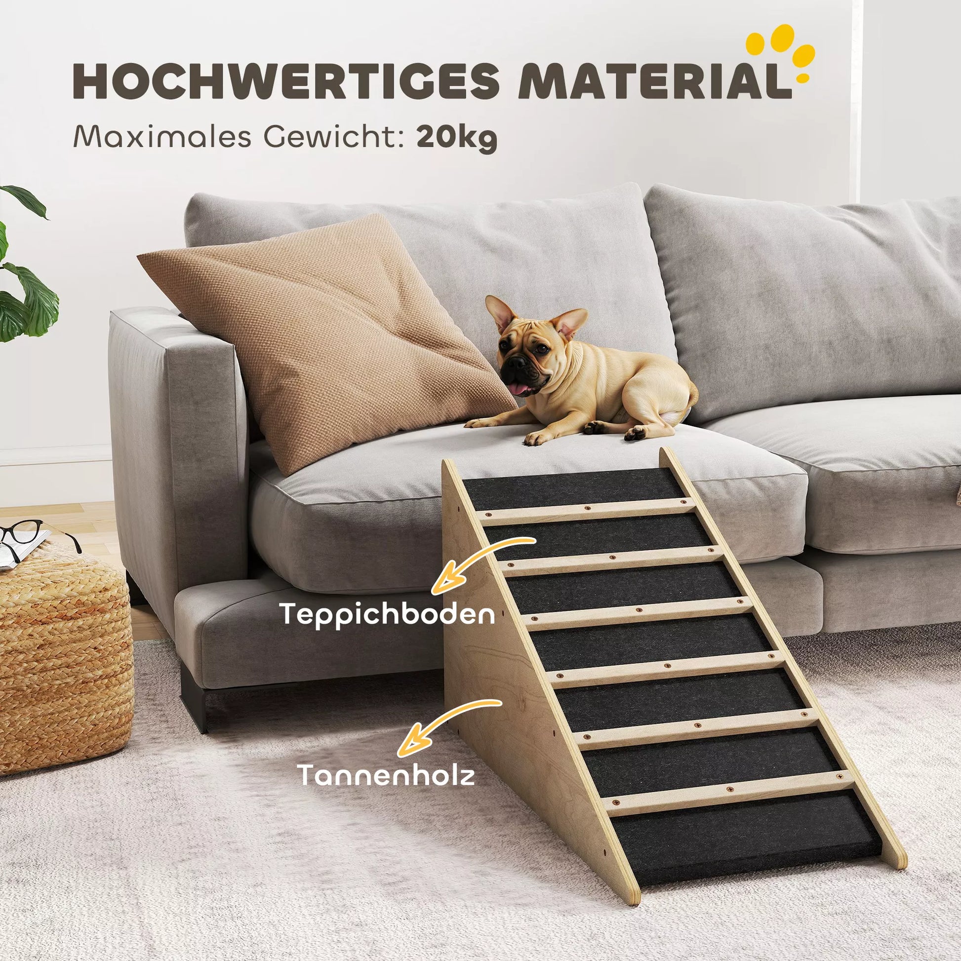 PawHut Gyvūnų laipteliai, šunų laipteliai, pušies mediena, neslystanti danga, 90 cm x 40 cm x 45 cm, Natūrali + Pilka