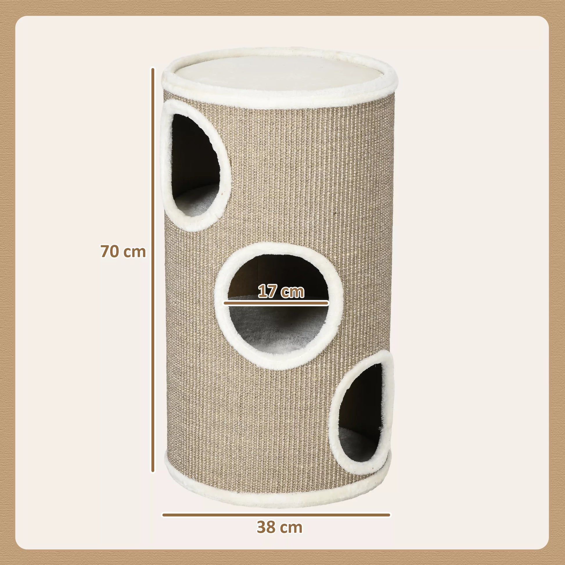 PawHut Kačių draskyklė, minkštas pliušas, sizalio draskymo kilimėlis, tvirta, Ø38 x 70A cm, ruda