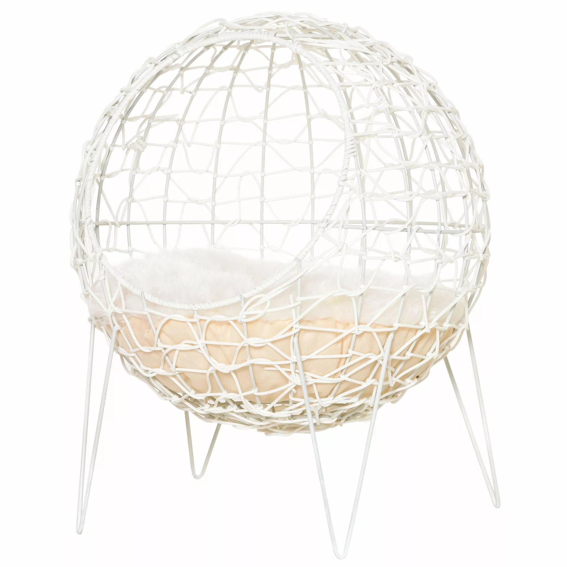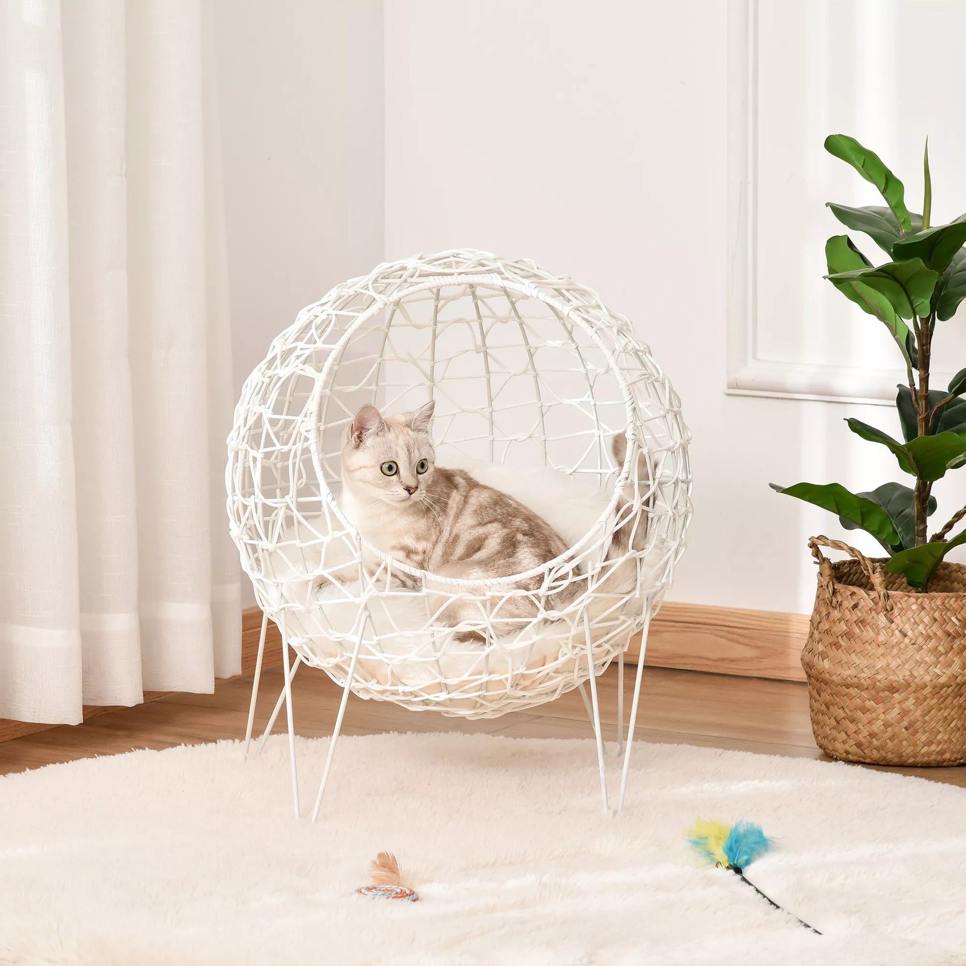 PawHut Rotango katės lova/namelis su pagalvėle, paaukštintas dizainas, augintinio lova, kreminės baltos spalvos, Ø45 x 57A cm