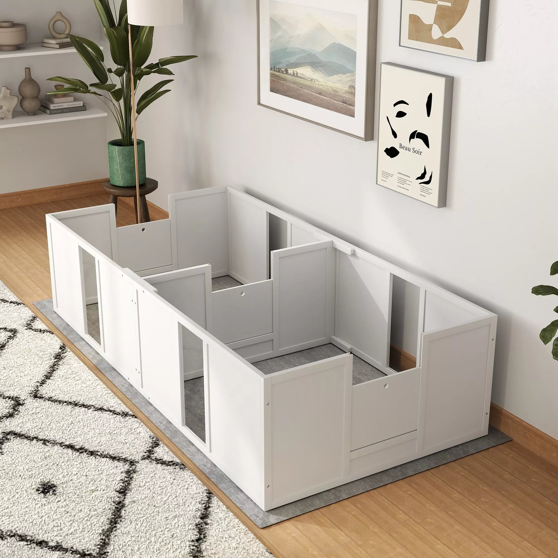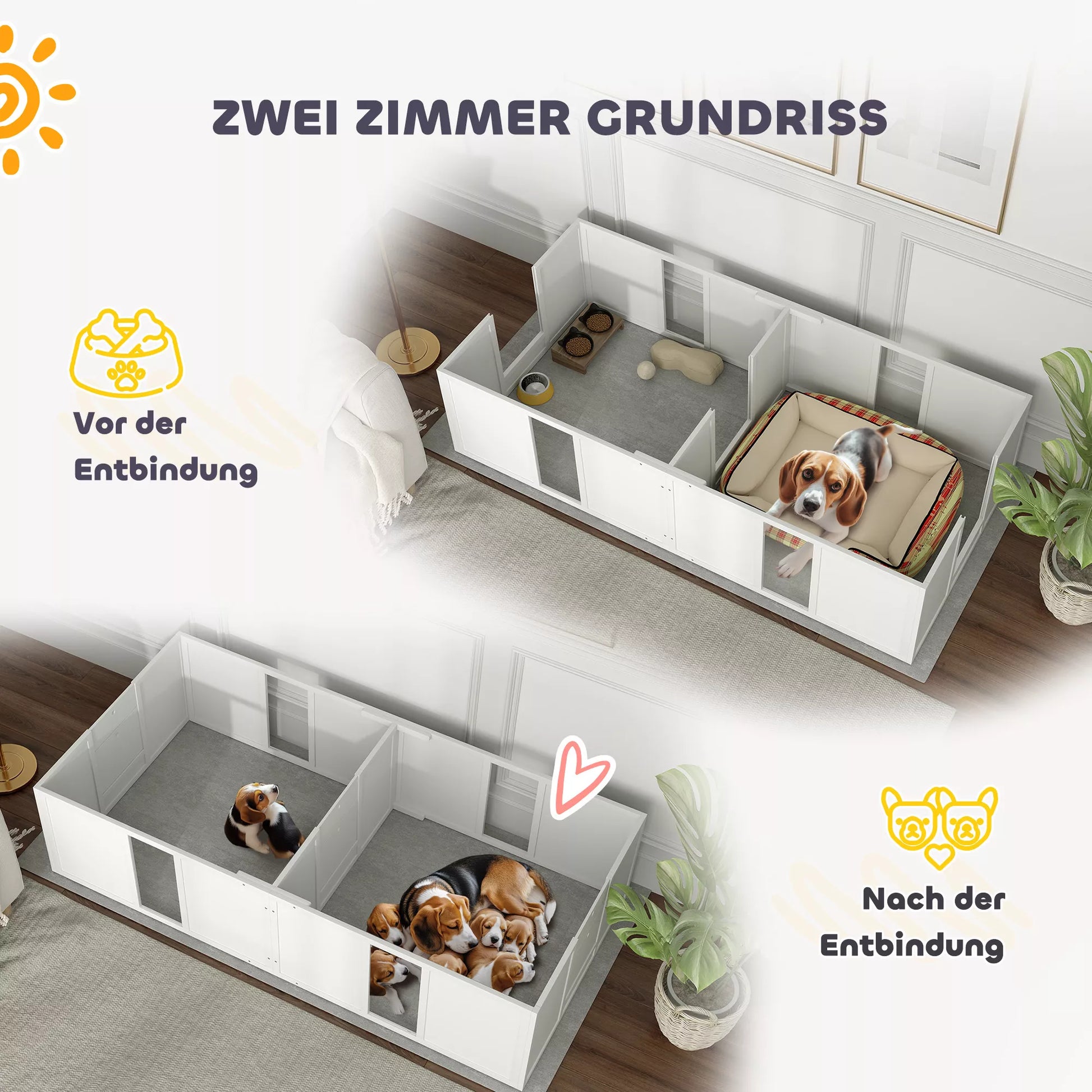 PawHut Veisimo dėžė šuniukams, dalijama į 2 skyrius, su akriliniu langeliu, 196 x 96 x 48 cm, balta