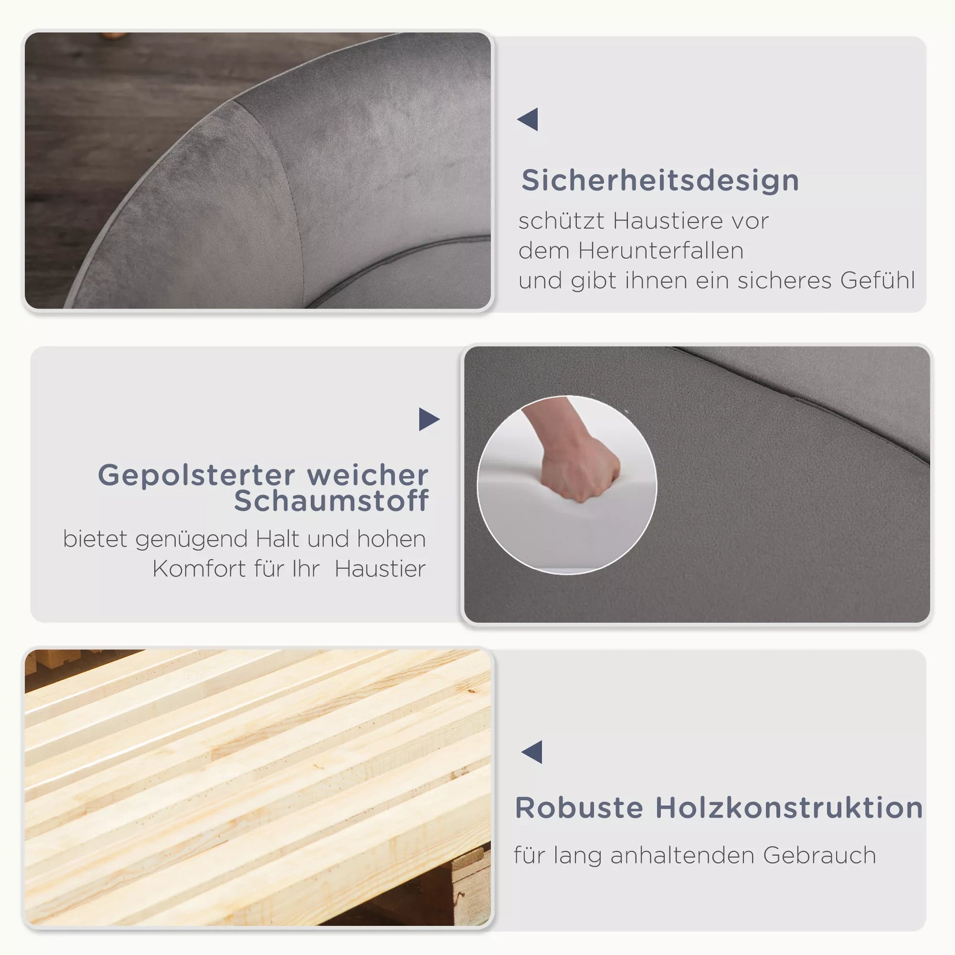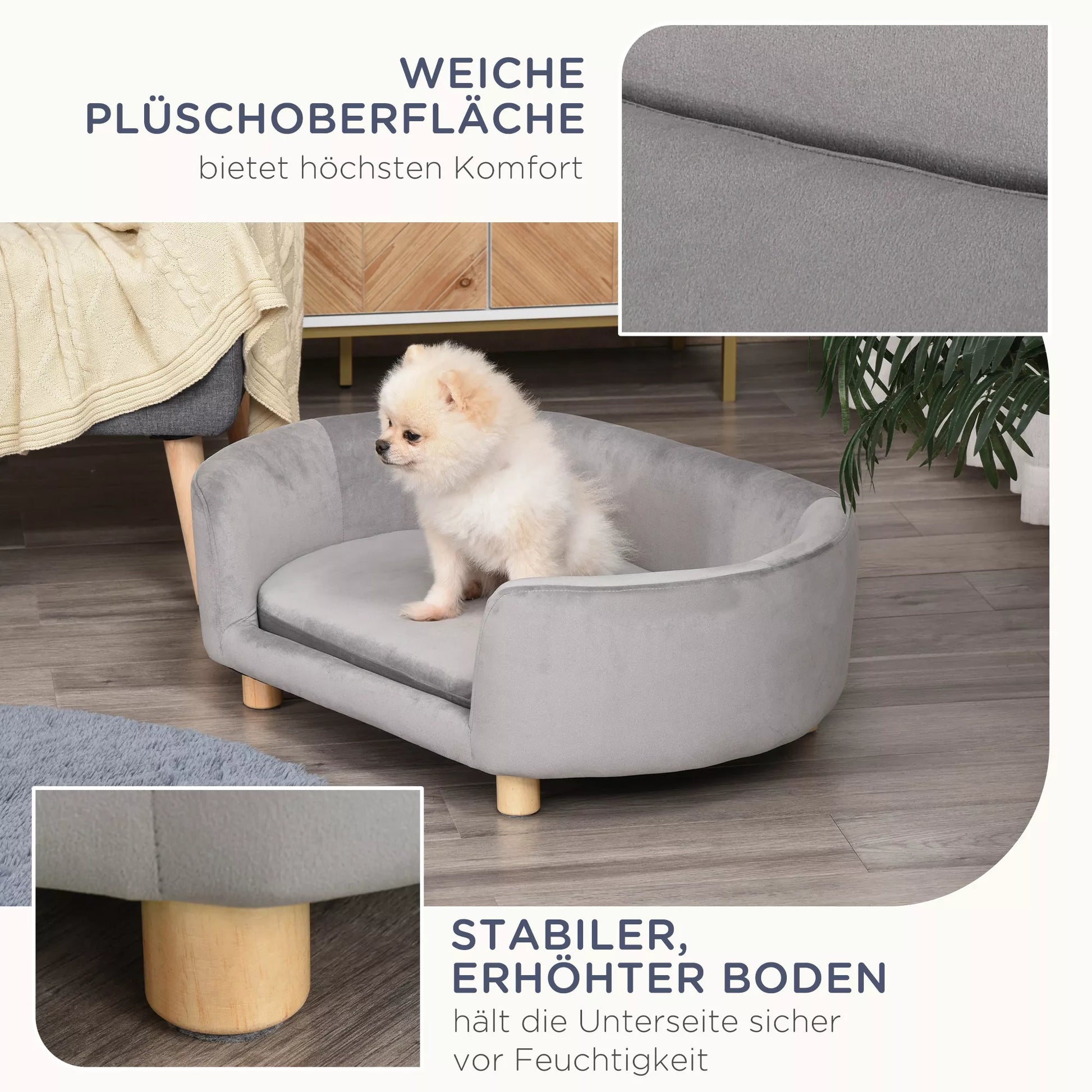 Sofa augintiniams, šunų sofa, šunų lova su olandišku aksomu, putplasčiu ir beržo kojelėmis katėms ir šunims, 86 x 55 x 33 cm, šviesiai pilka