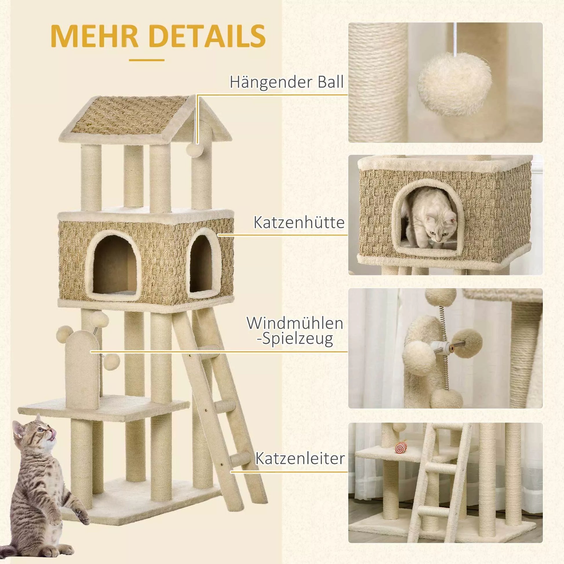 Šis kačių namelis yra ne tik draskyklė, bet ir jaukus namelis jūsų katei. Jame, ant 3 lygių, jūsų katės galės aštrinti nagus, žaisti, snausti ir miegoti. Per kopėtėles katė lengvai pasieks aukščiau esantį namelį. Draskymo stulpai suteikia jūsų katei galimybę aštrinti nagus. Nesvarbu, ar poilsiui, žaidimui, ar miegui – šis kačių namelis yra idealiu užuoglauda jūsų katėms.