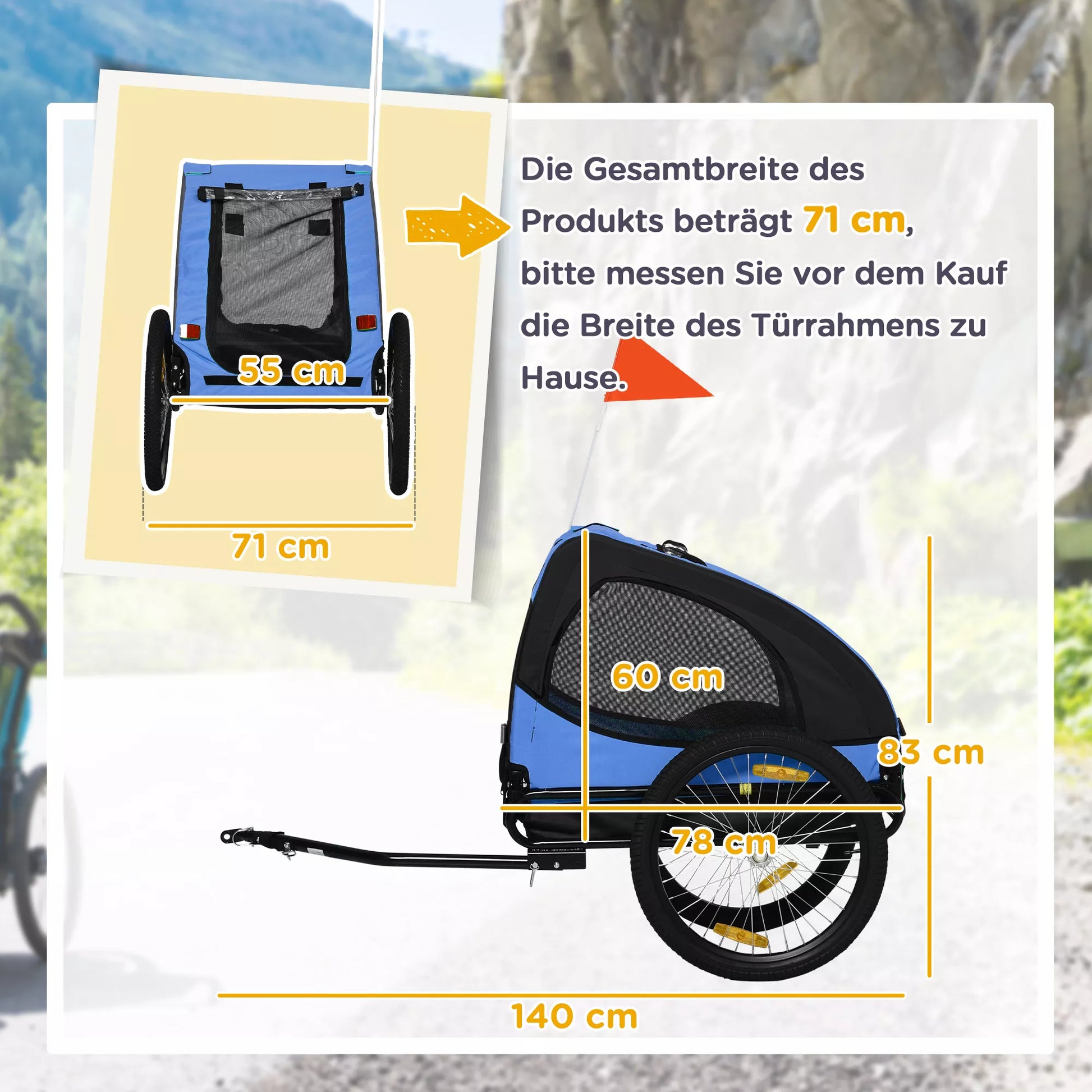 Sulankstoma šunų dviračio priekaba, atspari vandeniui, Oksfordo audinys, Plienas, 140 x 71 x 83 cm, Mėlyna