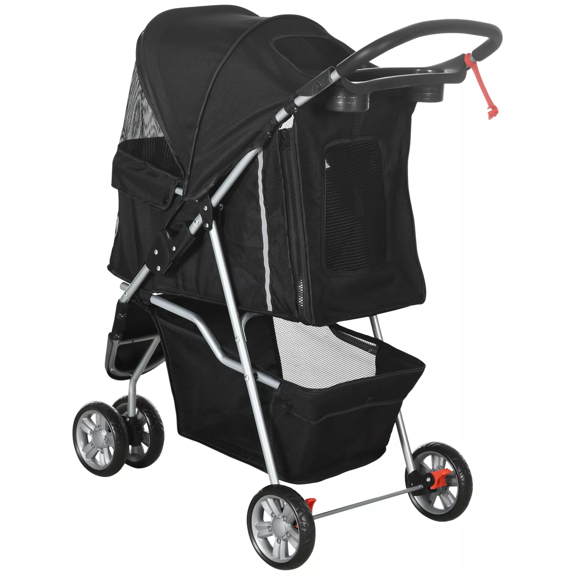 Sulankstomas vežimėlis šunims ir katėms iki 10 kg, 75 x 45 x 97 cm, tamsiai pilkas