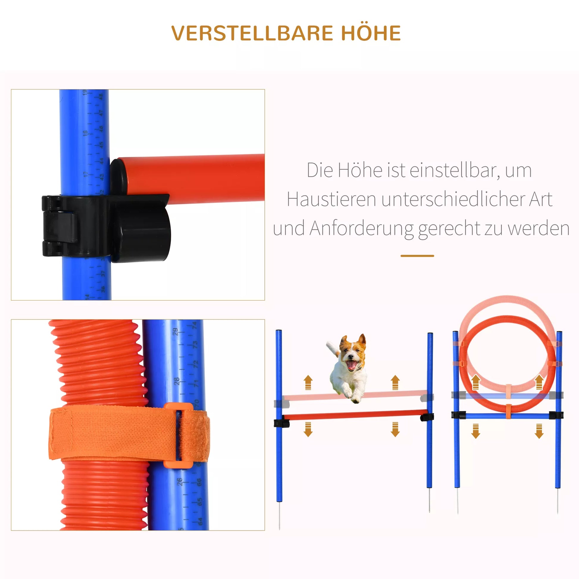 Šunų agiliti treniruočių įranga, agiliti treniruočių rinkinys, šunų agiliti rinkinys, slalomo barjerų ir šokinėjimo lankas šunims, 3in1 šunų sporto treniruočių aikštelė, Mėlyna+Raudona