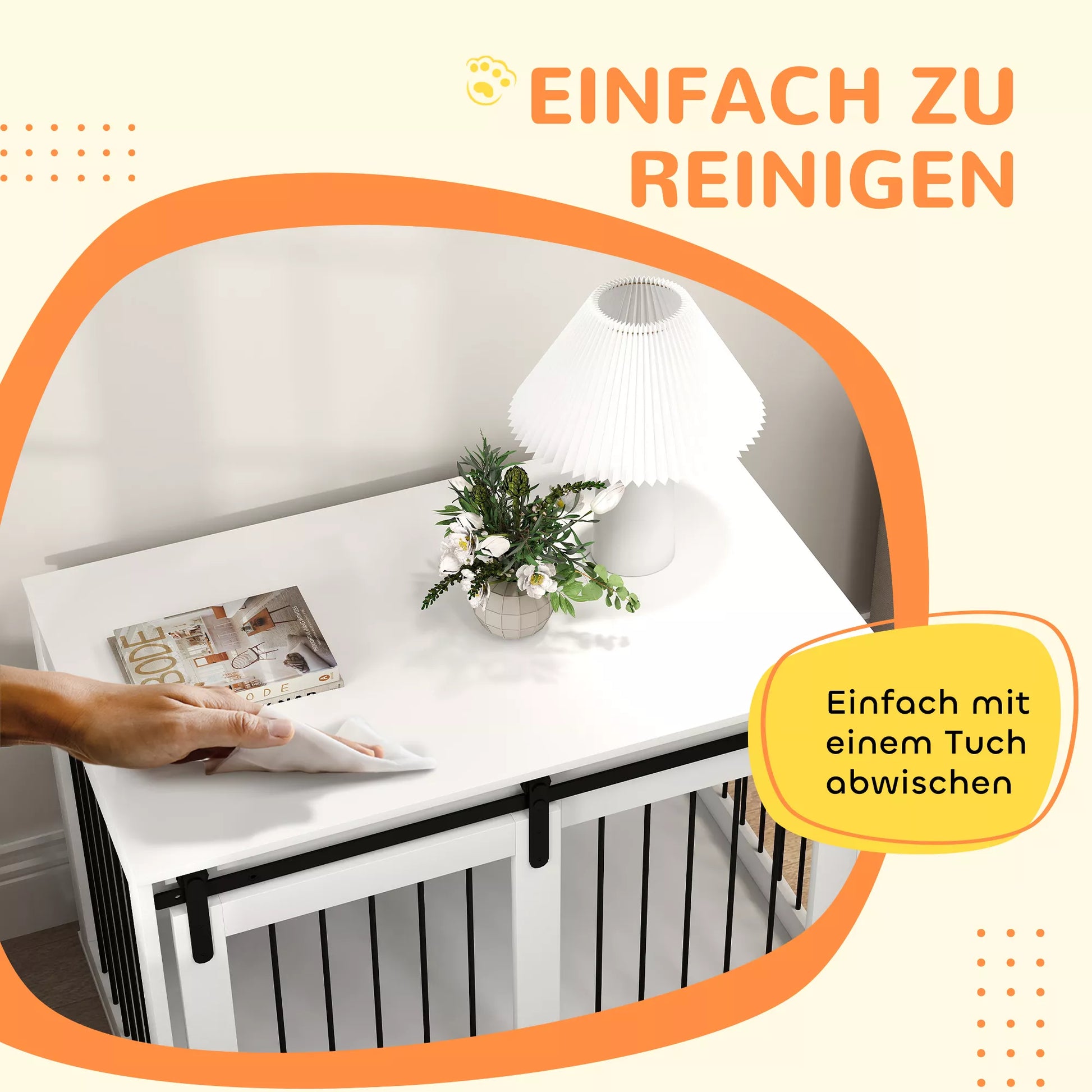 - ✔ Šunų narvas pagamintas iš medžio drožlių plokštės ir plieno, užtikrinant stabilumą