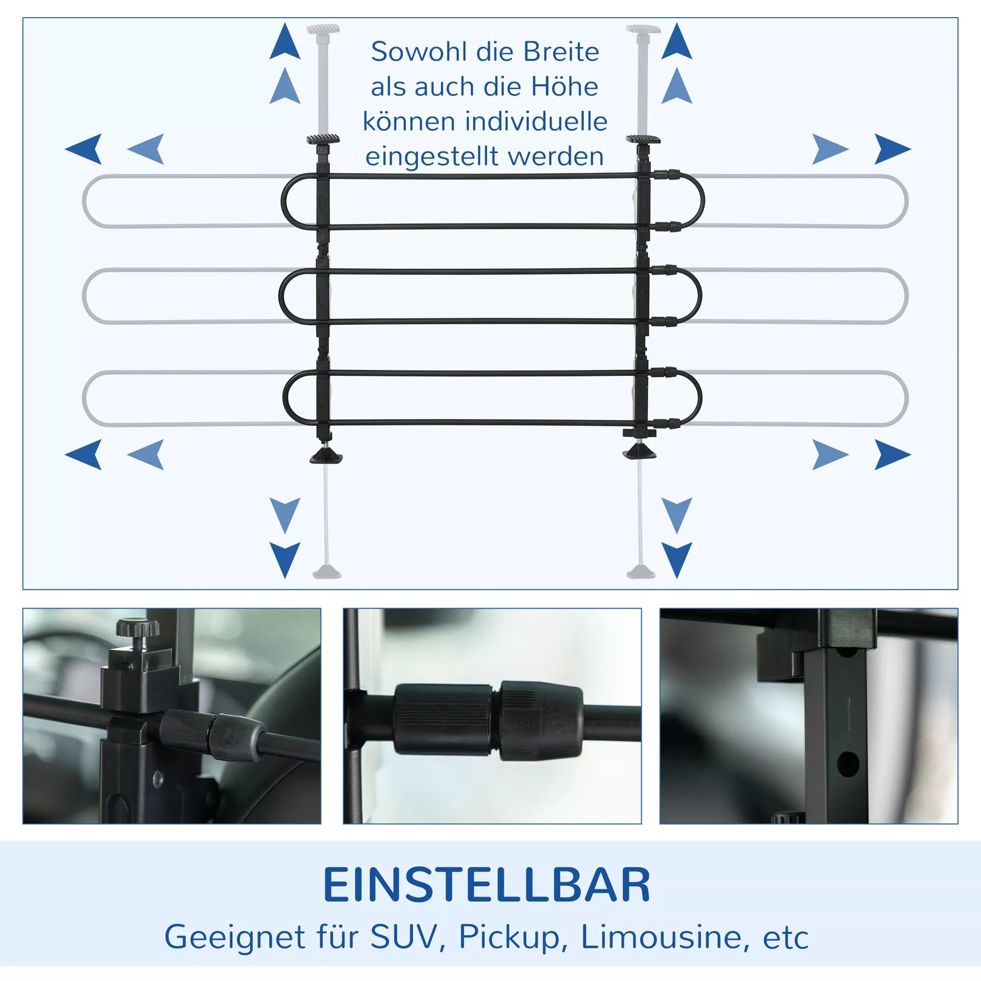 Ar dažnai keliaujate su naminiais gyvūnais? Su šia automobilio pertvara šunims galite saugiai apgyvendinti savo šunį bagažinėje. Pertvara pagaminta iš tvirtų plieninių strypų, kurie užtikrina stabilumą ir nesideformuoja. Tiek plotis, tiek aukštis yra reguliuojami, todėl ji tinka įvairių dydžių transporto priemonėms. Šią apsauginę pertvarą lengva sumontuoti – nereikia jokių įrankių, tiesiog pritvirtinkite ją už galinių sėdynių.