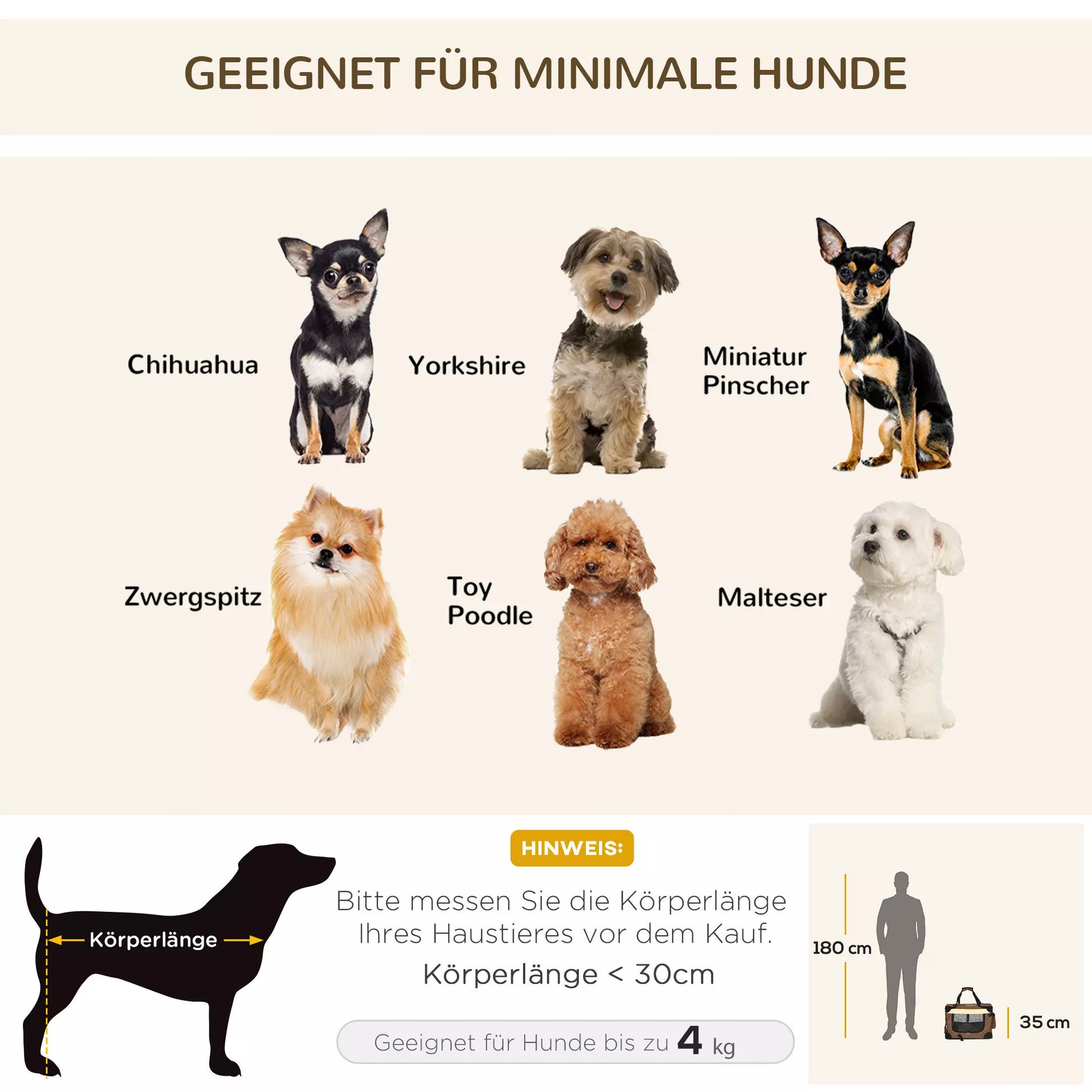 • ✔ Tinka mažiems šunims, kurių kūno ilgis iki 30 cm ir svoris iki 4 kg