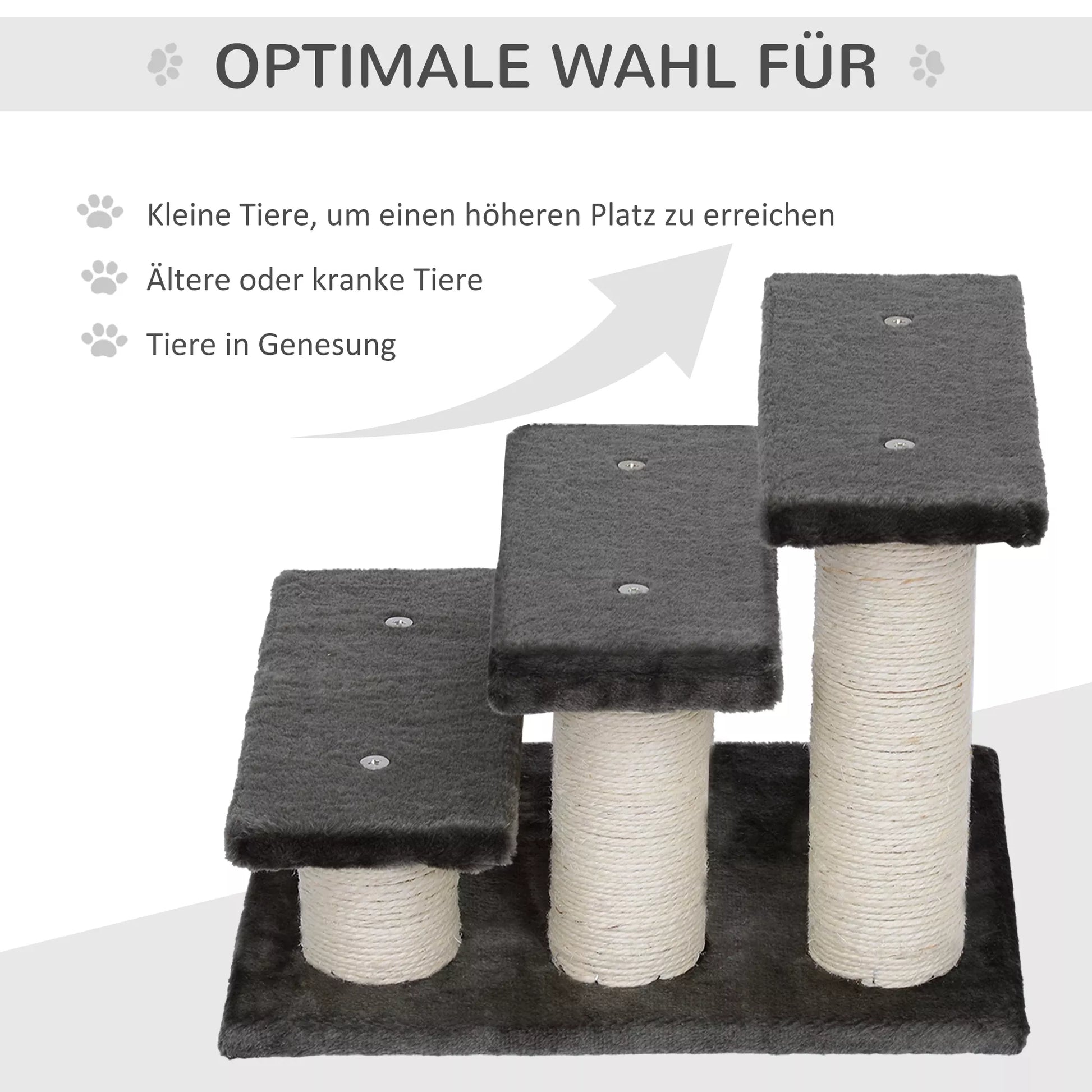 Šunų laipteliai 3 pakopų 34 cm aukščio naminių gyvūnėlių laipteliai šunims, katėms, su draskykle, šunų rampa, įlipimo pagalbininkas lovai, sofai, čiužiniui, tamsiai pilki