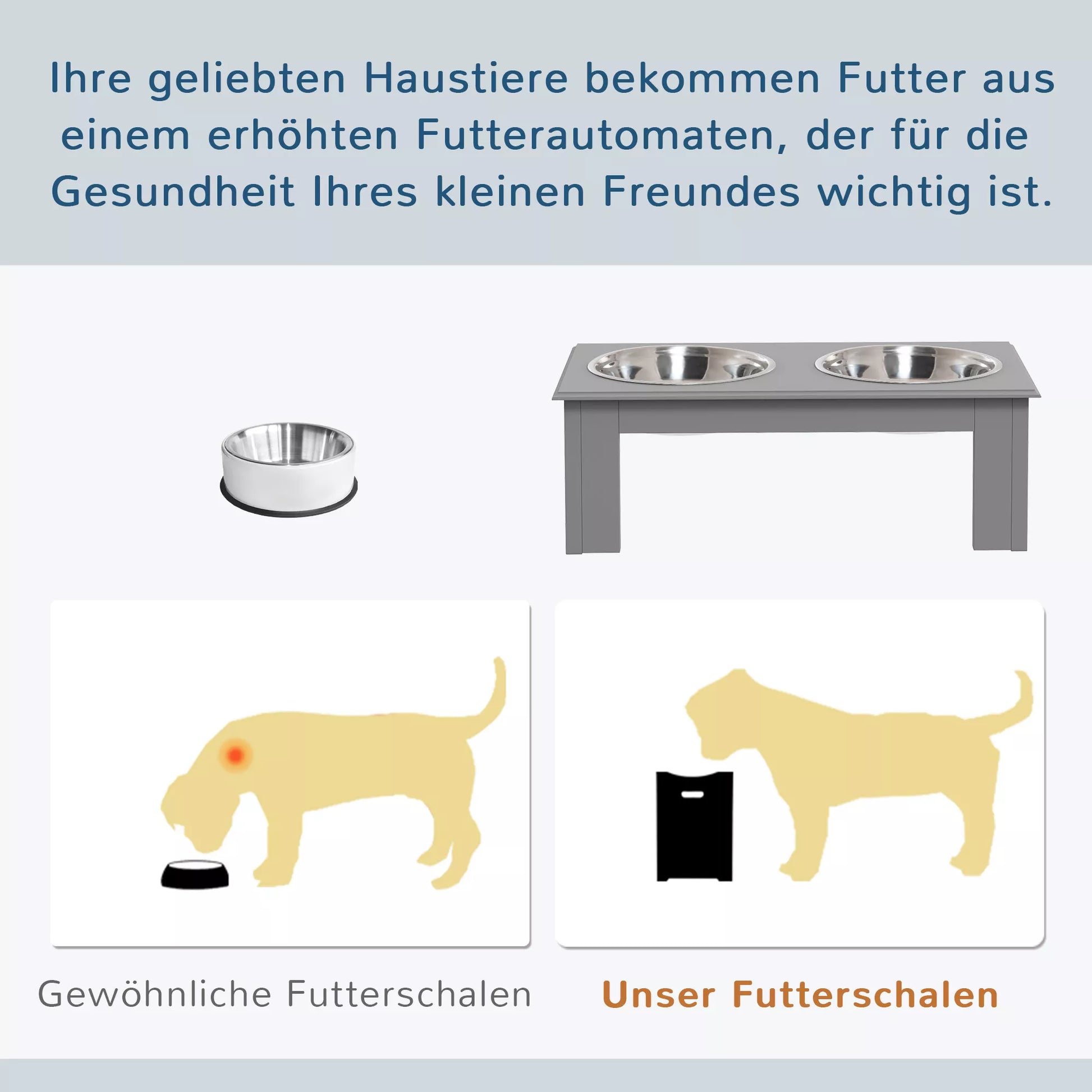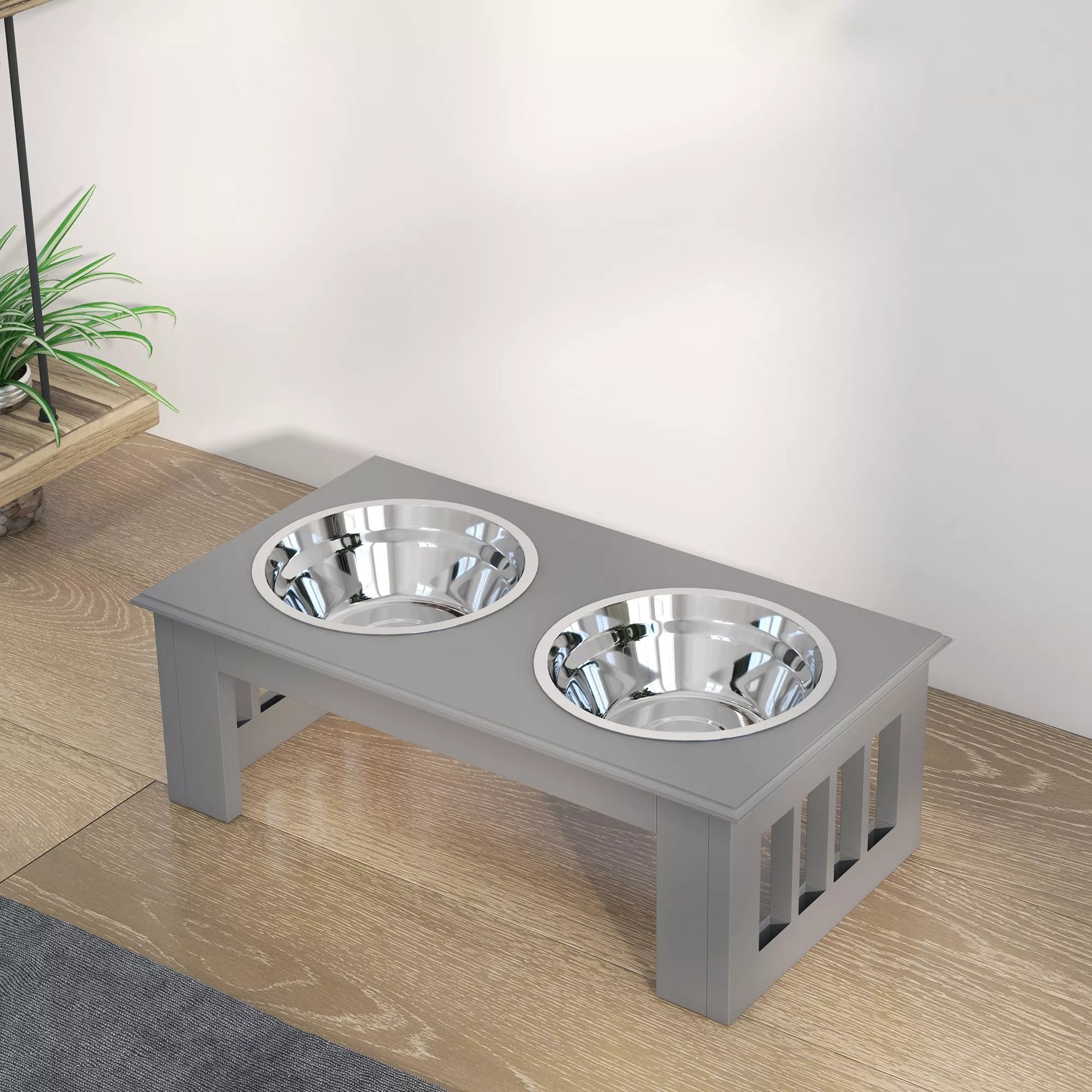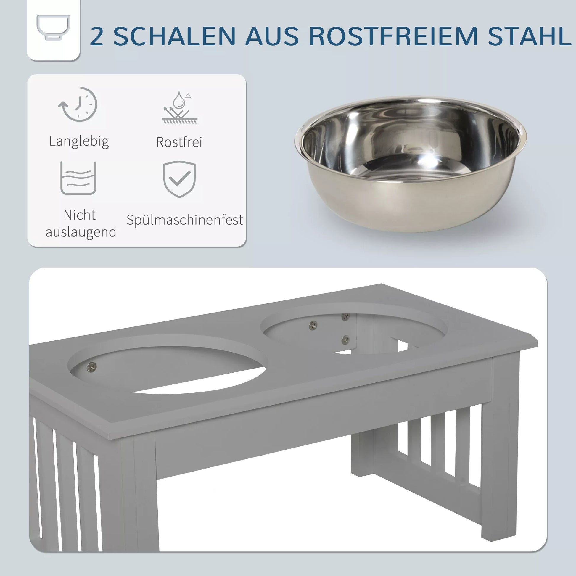 - ✔ Paaukštinti dubenėliai su neslystančiomis kojelėmis užtikrina stabilumą, neleidžia slysti ir apsaugo jūsų grindis